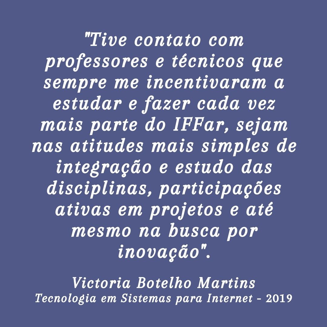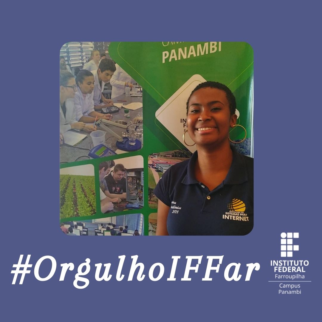 Nosso #OrgulhoIFFar de hoje é a egressa do curso superior de Tecnologia em Sistemas para Internet, Victoria Botelho Martins.