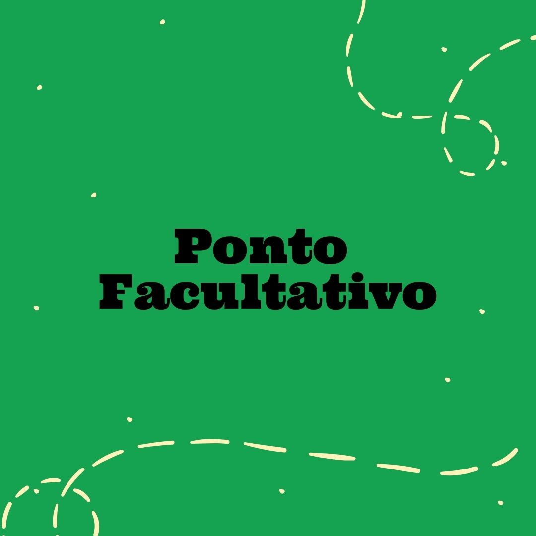 #PraTodosVerem Card com fundo verde escuro, com texto escrito na cor preta dizendo "Ponto facultativo". Há também alguns pontos brancos na imagem, distribuídos ao longo do card, com duas linhas pontilhadas simulando trajetos.