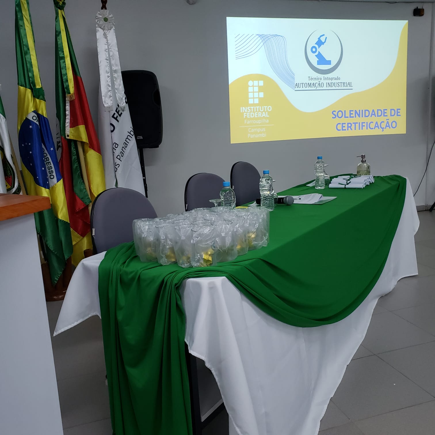 Nos dias 21, 22 e 23 de dezembro o auditório do IFFar – Campus Panambi foi palco para a solenidades de certificação dos concluintes dos Cursos Técnicos Integrados ao Ensino Médio – diurnos. As solenidades ocorreram no formato híbrido, contando com a presença de concluintes e um número limitado de convidados, sendo transmitidas concomitantemente pelo Youtube.