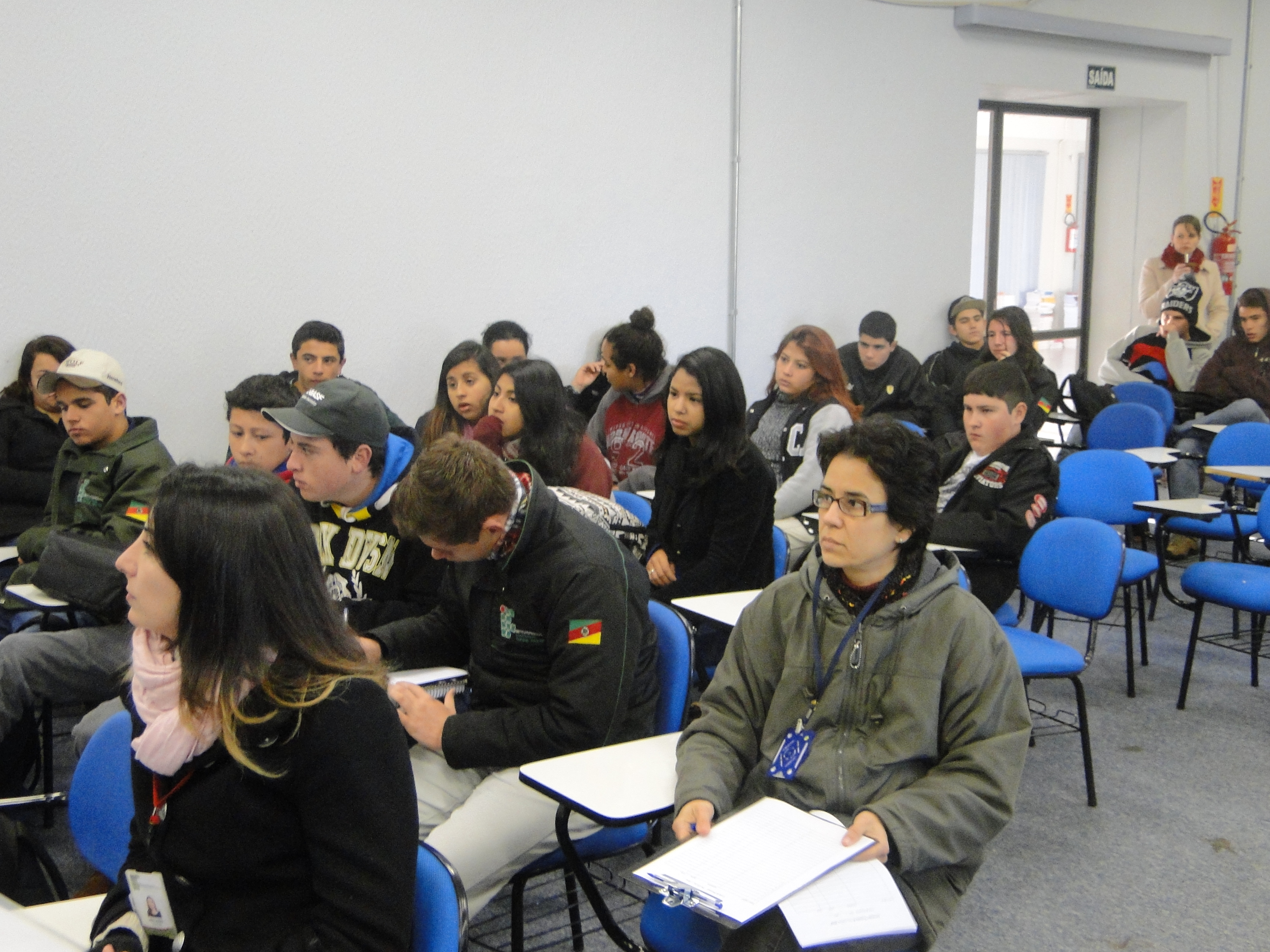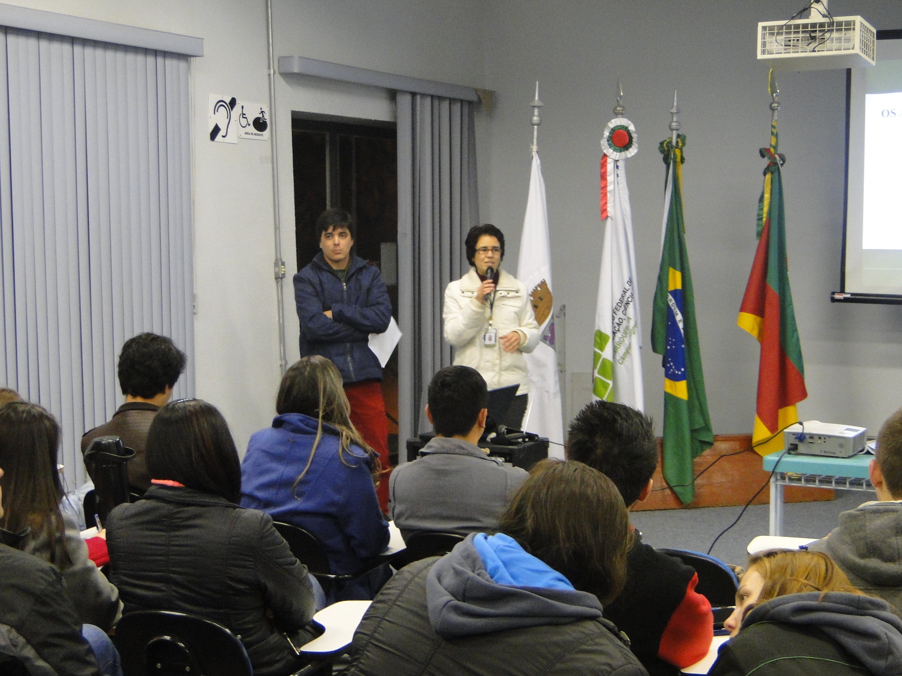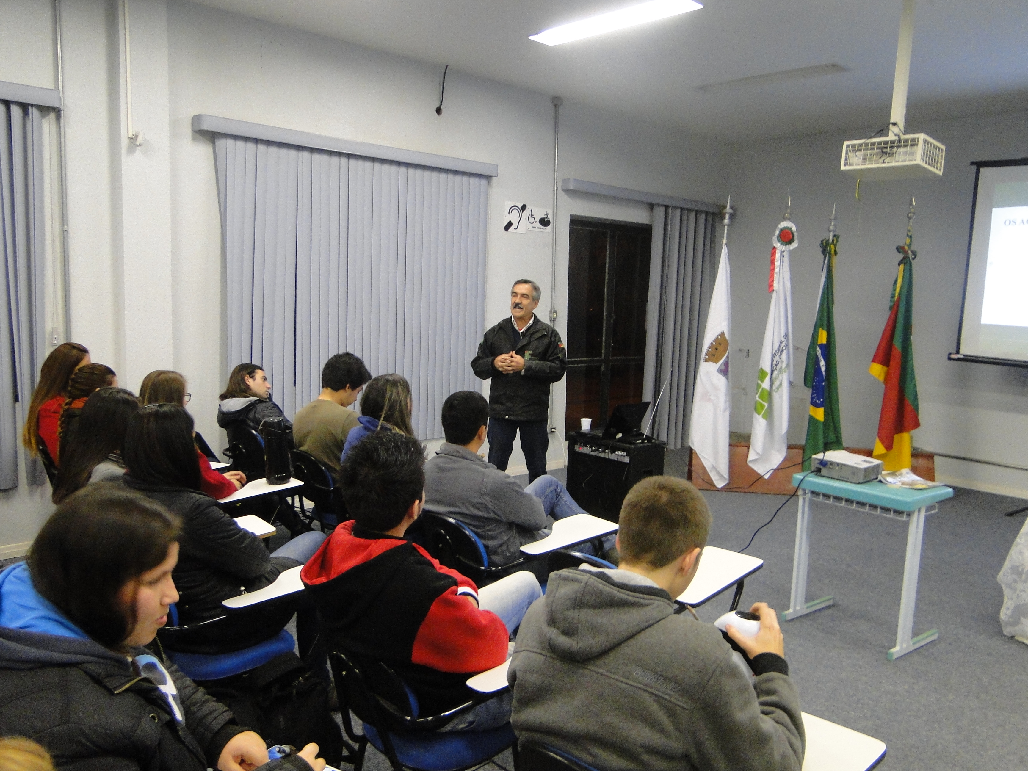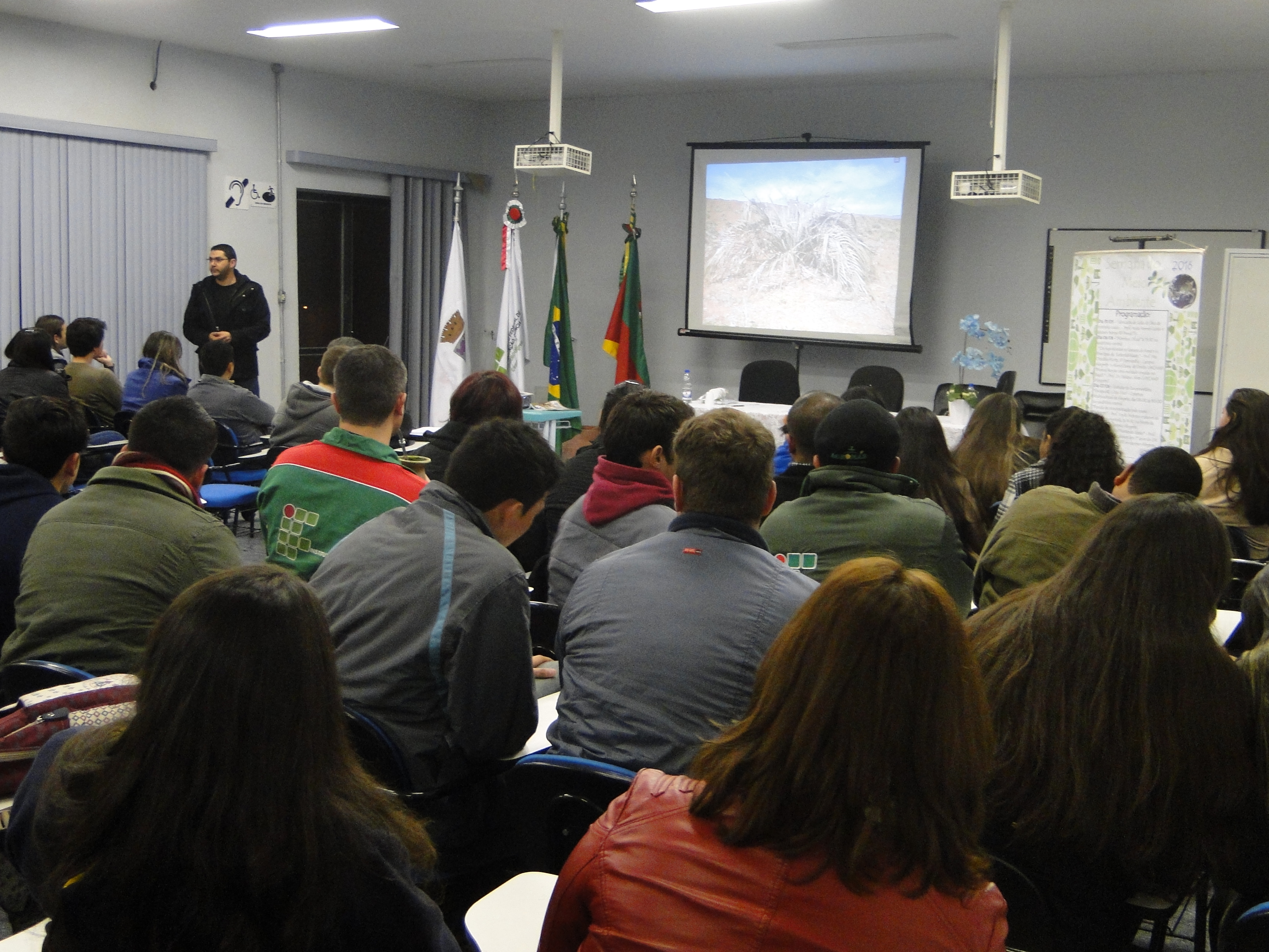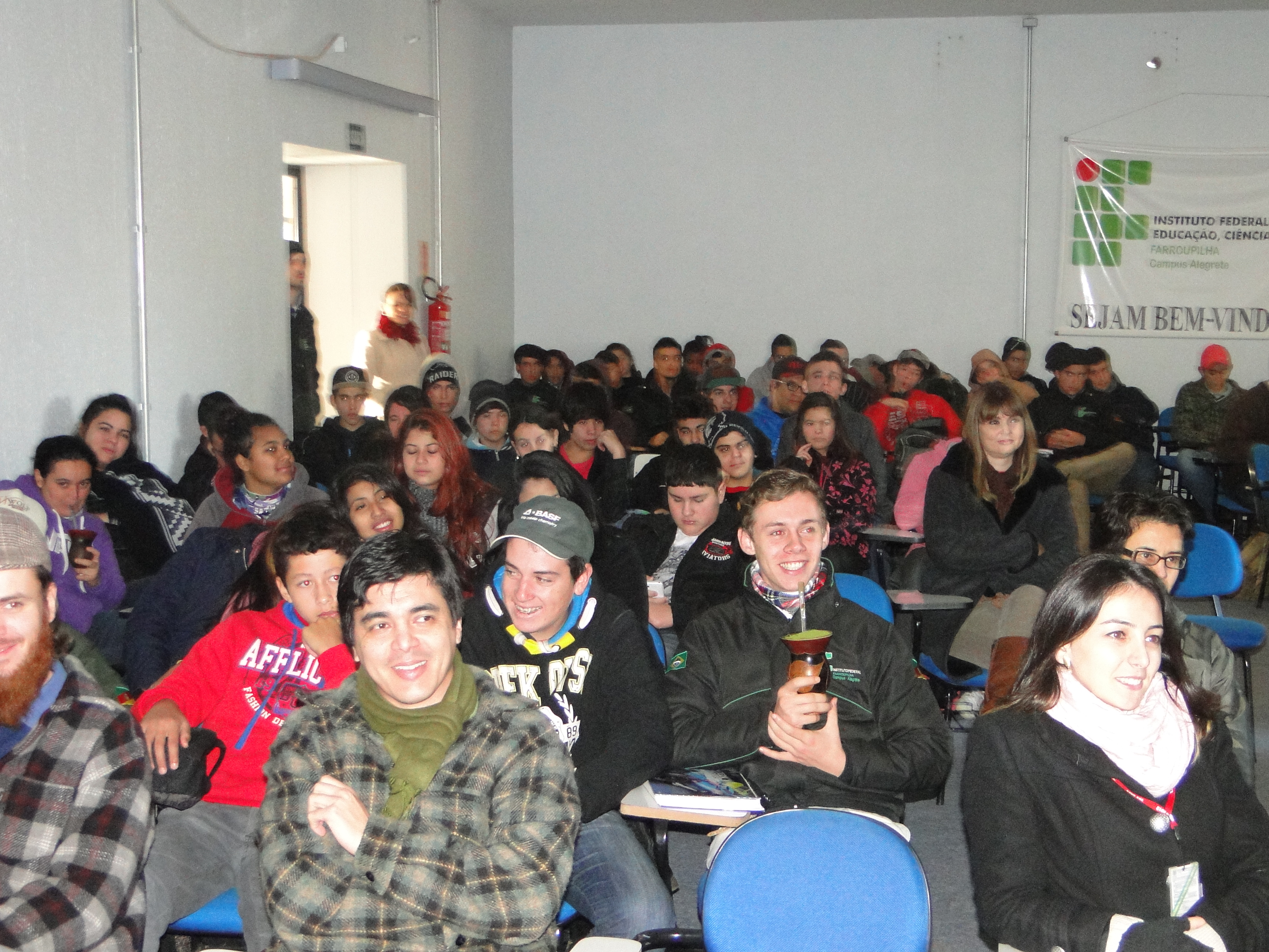 Na terça-feira, dia 07, às 08h, no Auditório Central, os alunos dos cursos integrados foram convidados para assistir o documentário “Ibirapuitã, o Rio Vivo”, produzido por Maria Rosane Furtado e dirigido por Alisson Machado e Paulo Amaral. Após a exibição, o filme foi debatido pelos representantes do Coletivo Multicultural de Alegrete, Bolívar Marini, Maria Rosane Furtado e Kátia Messa.