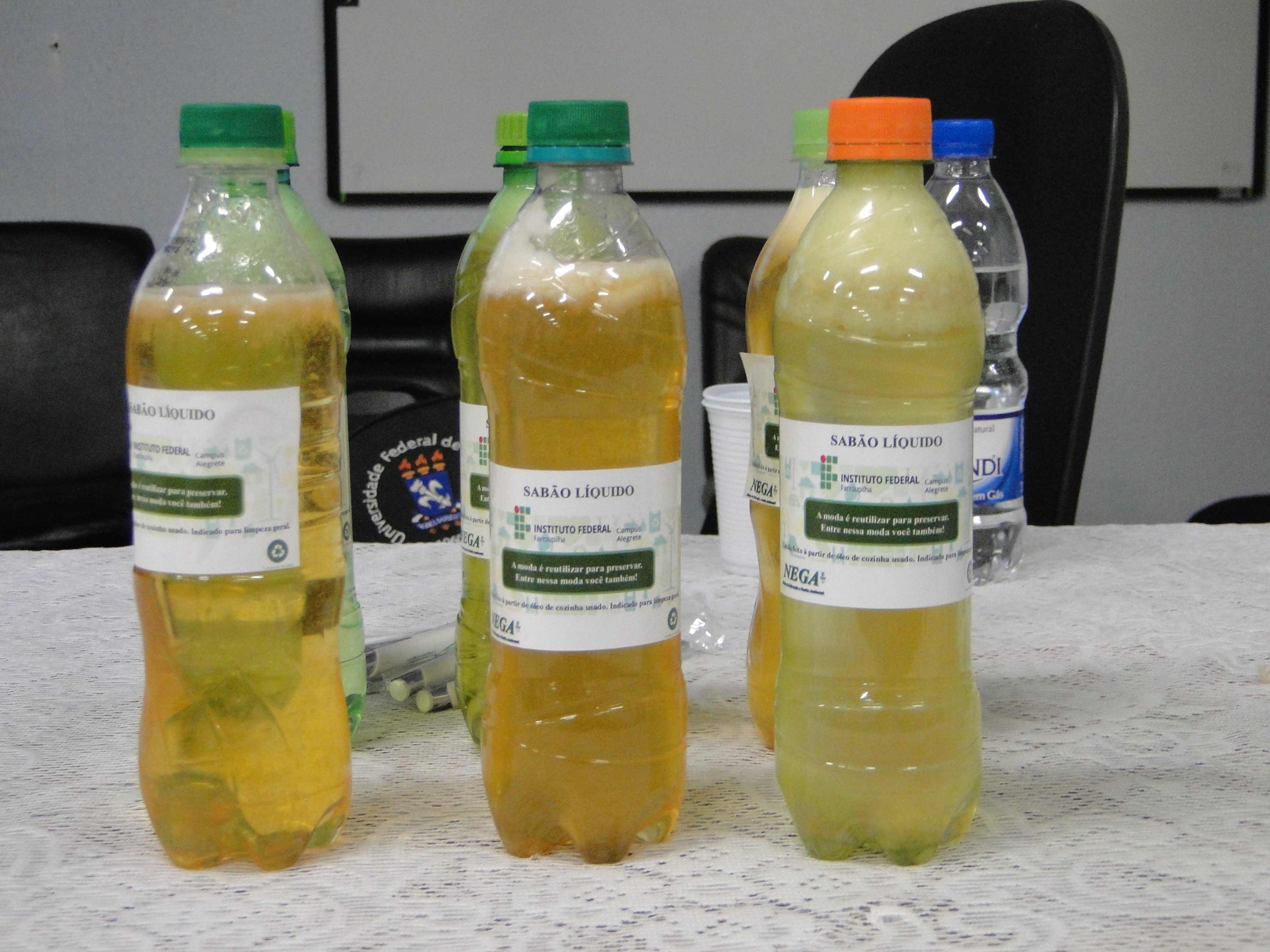 Na tarde do mesmo dia, na frente da Unipampa/Alegrete, às 16h30, os alunos do curso de Engenharia Agrícola, junto com a professora Keylla Pedroso, fizeram uma “Parada de conscientização pelo meio ambiente”, onde distribuíram sabão líquido produzido pelos alunos. A elaboração do sabão e o envasamento foram realizados pelas turmas 10 Proeja Agroindústria, Informática 20 e Química 101, na noite do dia 31 de maio, sob a orientação da professora Nádia Gobbi.