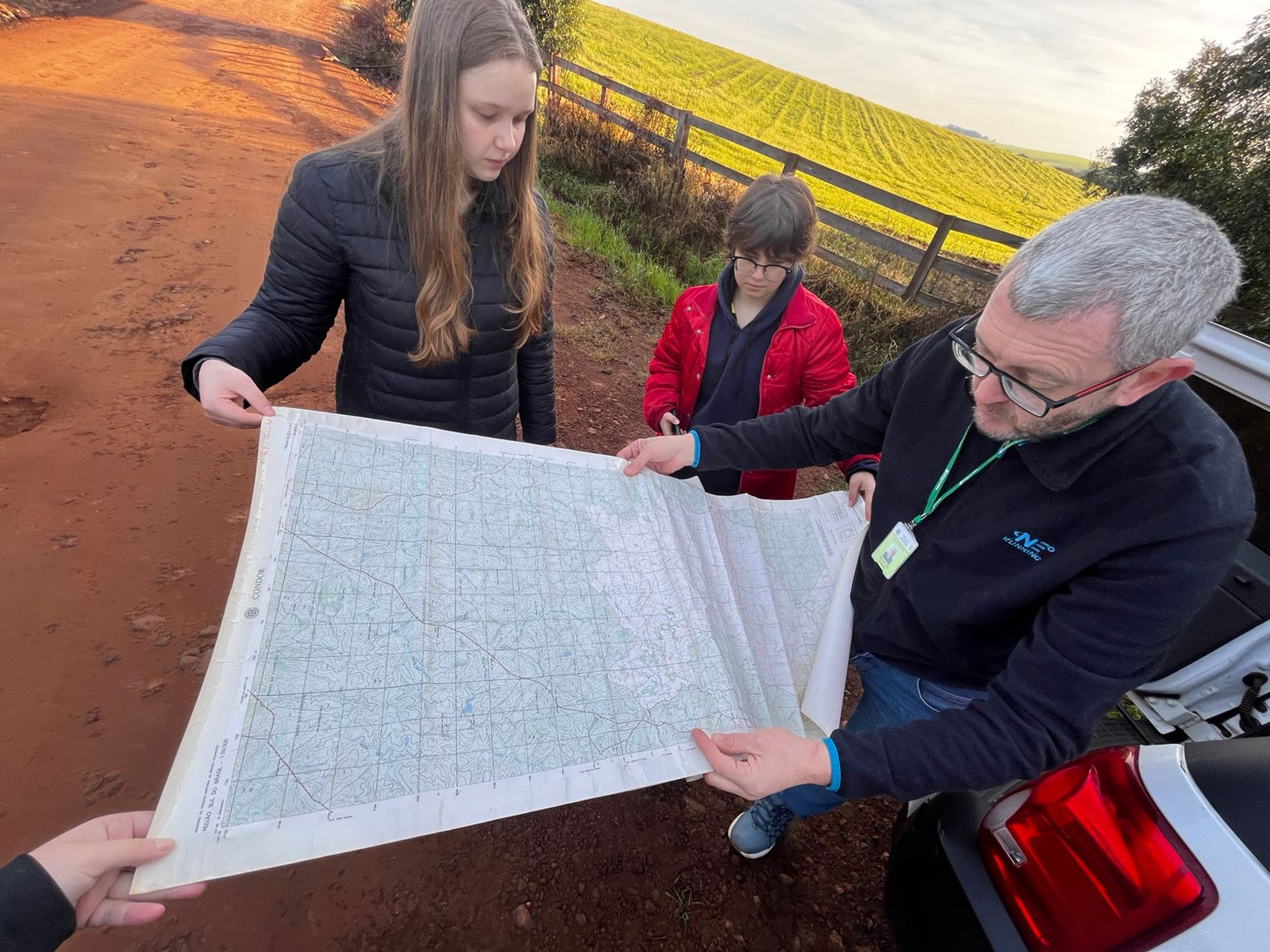 Posteriormente, foi realizada a Trilha Ecológica da Escola Municipal de Ensino Fundamental 21 de Abril, localizada na comunidade de Rinção Fundo, zona rural do município de Panambi. A atividade integra as ações de orientação ambiental e práticas pedagógicas promovidas pela instituição de ensino.