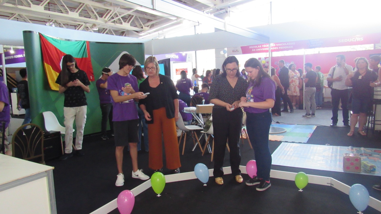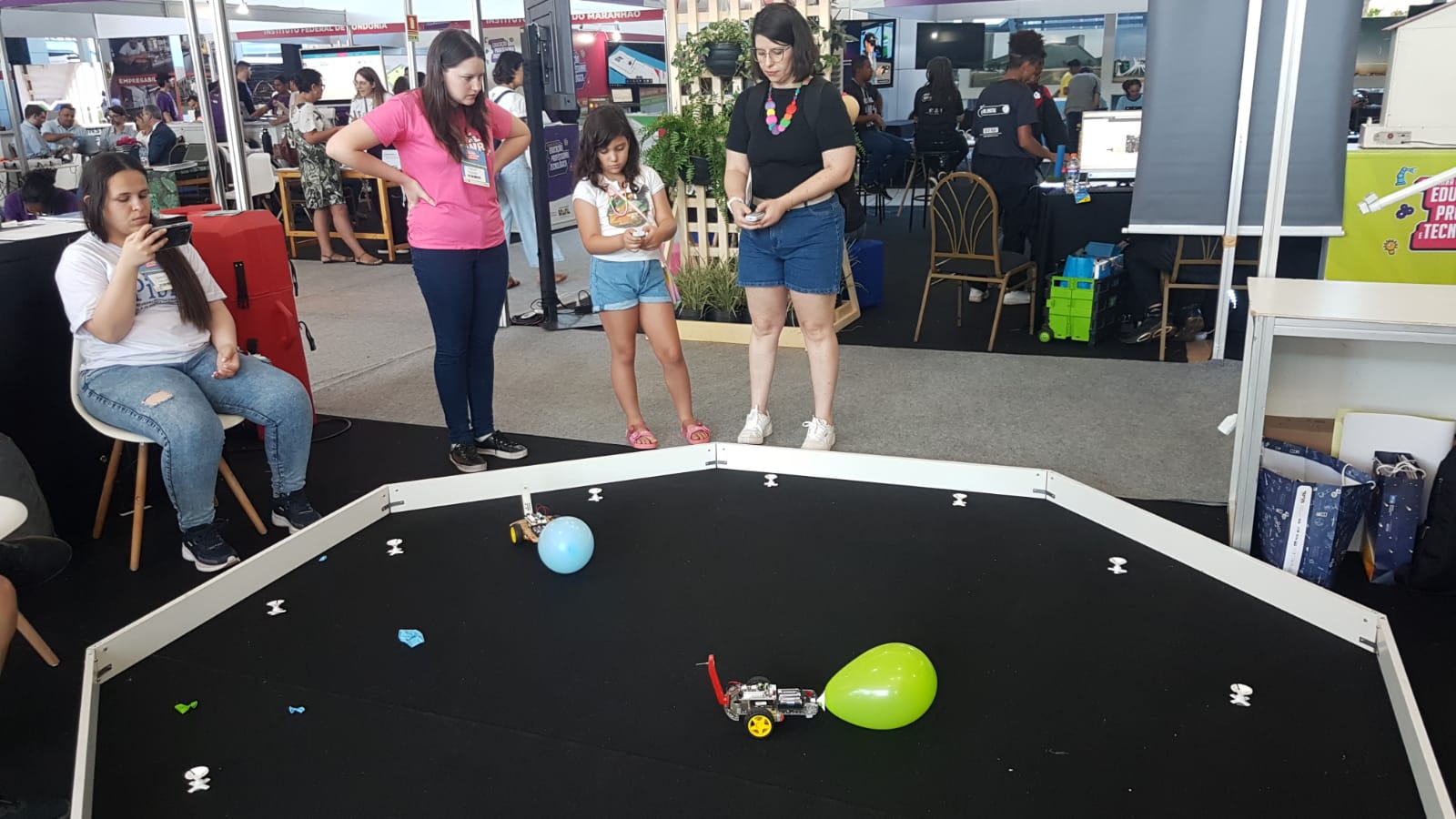“Levamos uma proposta que despertou curiosidade do público pela disposição dos elementos visuais aliados ao uso da tecnologia no controle dos carrinhos de forma lúdica e interativa”, pontuou Gláucio. Nesse sentido, o projeto incorporou, durante o evento, a sugestão de uma das visitantes do estande. A partir da identificação de um carrinho como sendo “maragato” e outro como “chimango”, a equipe executora do projeto adicionou a identificação de “lenços farroupilhas”, nas cores vermelho e branco, aos carrinhos, contextualizando essa disputa histórica para quem interagia com o projeto.