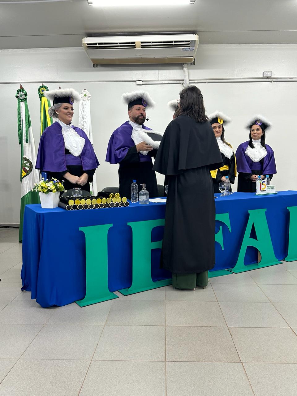 Realizada na sexta-feira, 05/04, a Colação de Grau abrangeu concluintes de cinco cursos: Licenciatura em Ciências Biológicas, Licenciatura em Química, Tecnologia em Processos Químicos, Tecnologia em Produção de Grãos e Tecnologia em Sistemas para Internet.