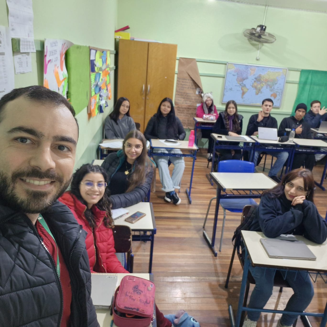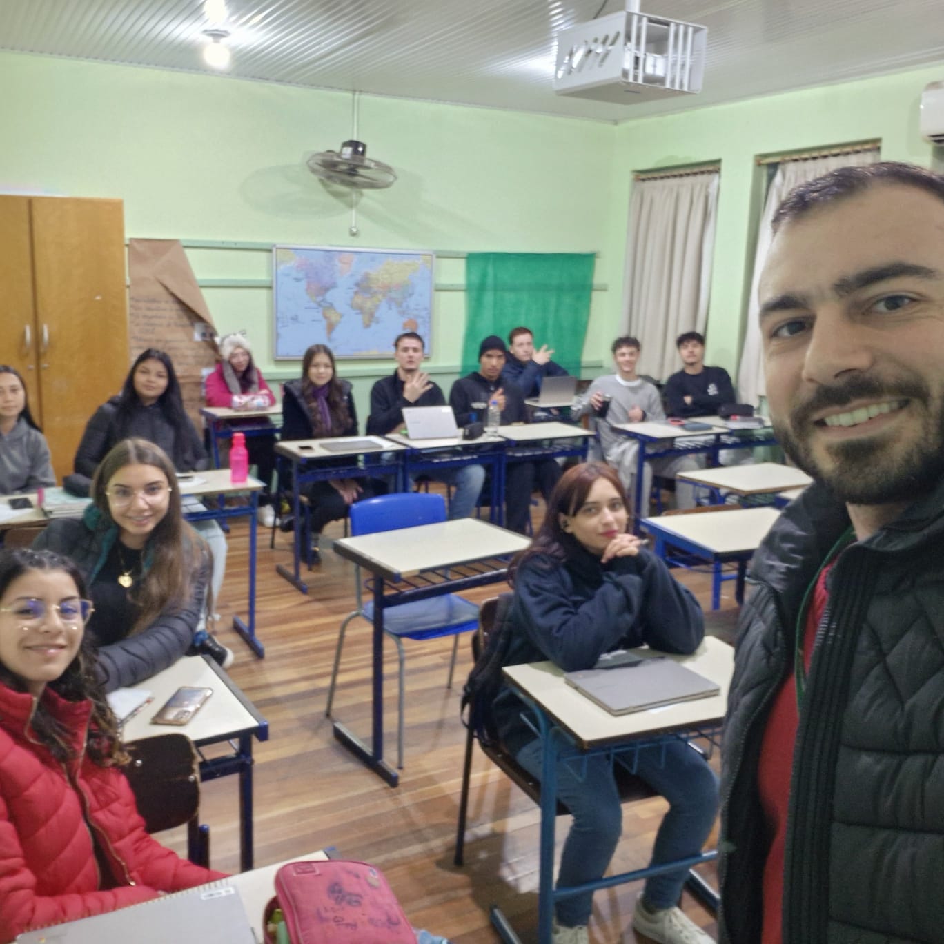 Visando divulgar os cursos de graduação do IFFar - Campus Panambi, servidores da instituição realizaram um mutirão para visitação às turmas de 3º ano do Ensino Médio de escolas do município, conforme alguns registros.