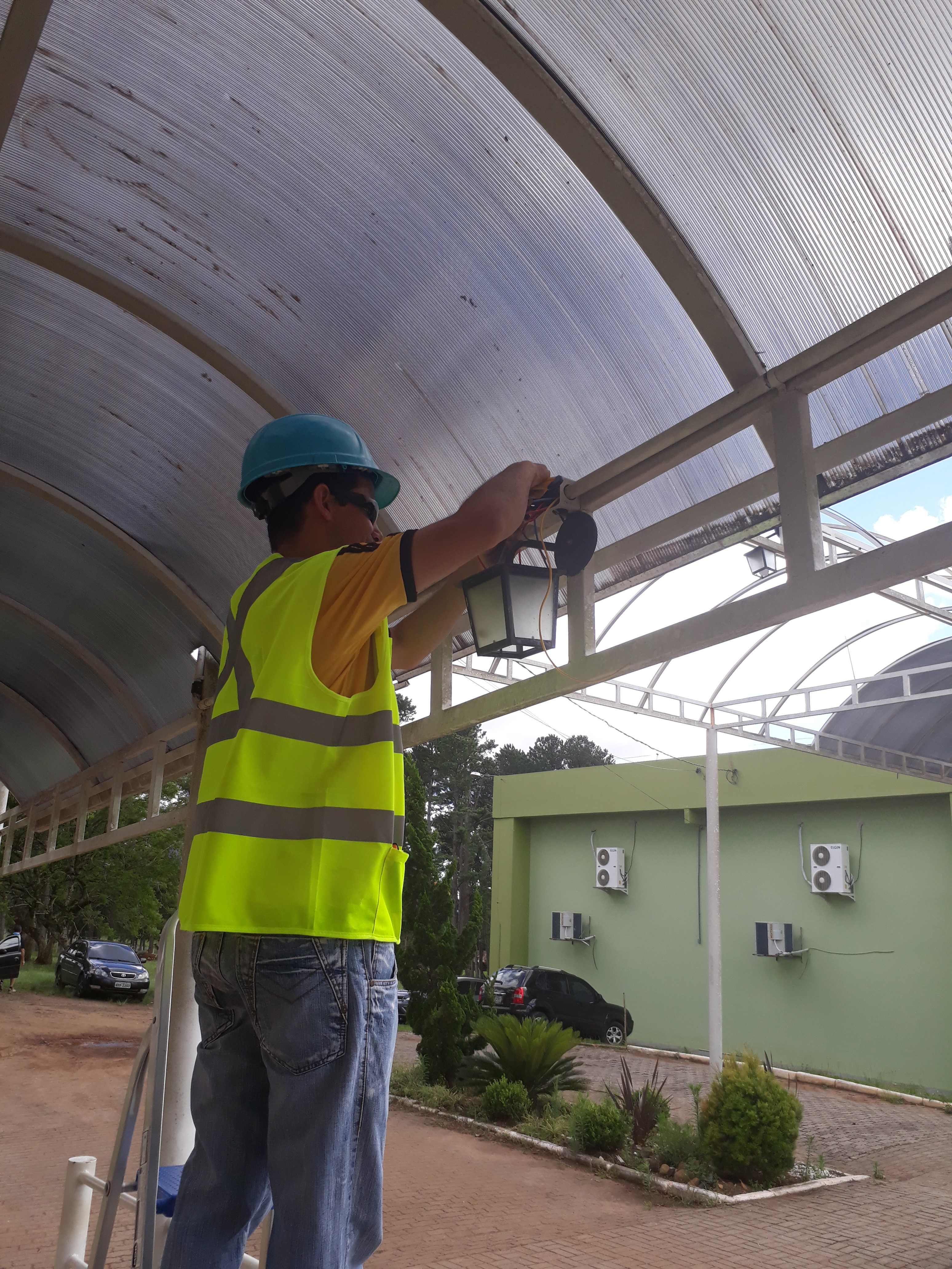 Os alunos do curso FIC de Eletricista Instalador Predial de Baixa Tensão realizaram a manutenção e modernização do sistema de iluminação das passarelas do campus Jaguari. A prática, prevista no plano de ensino do curso, compreende uma contrapartida do projeto para o campus.