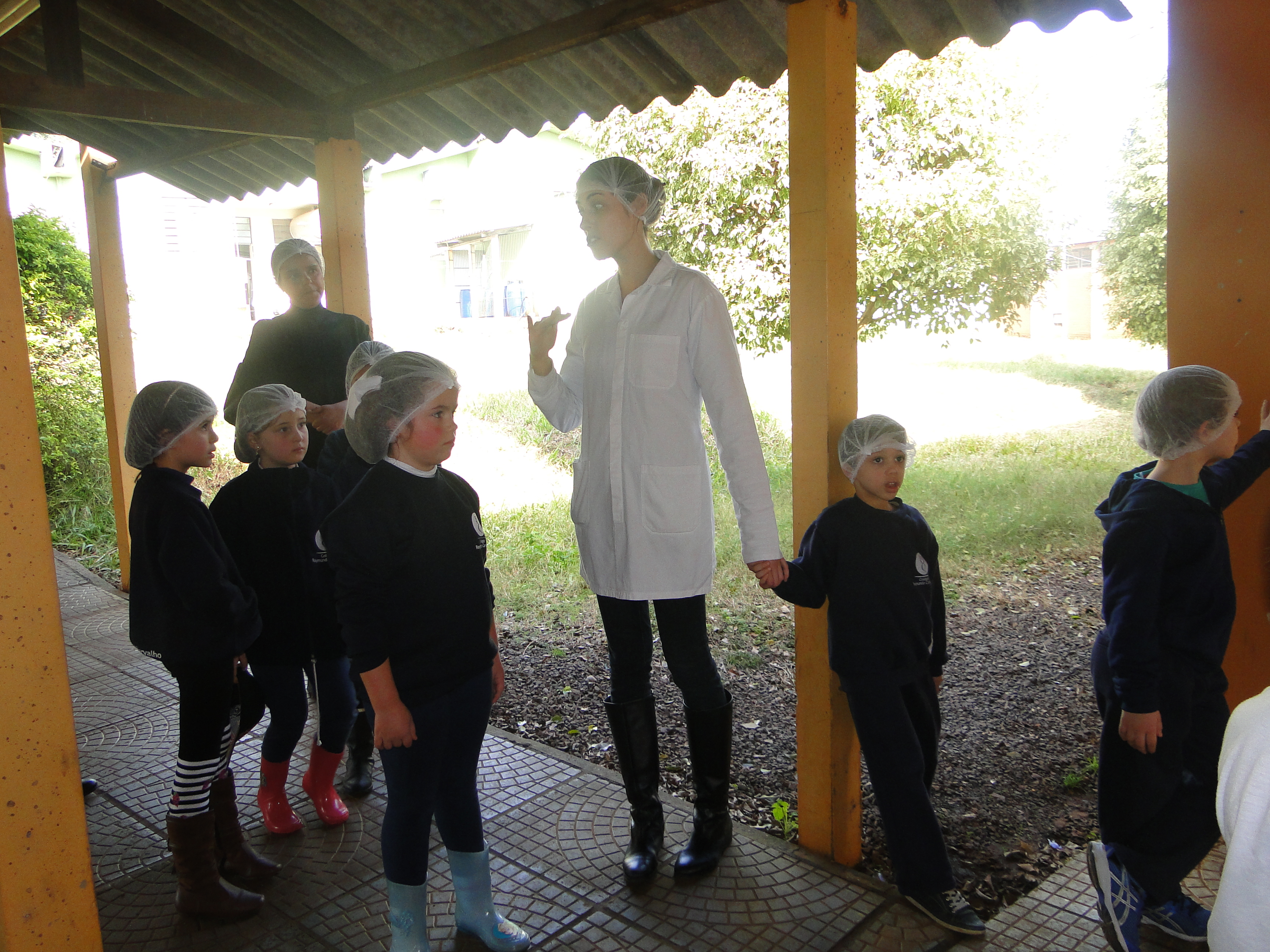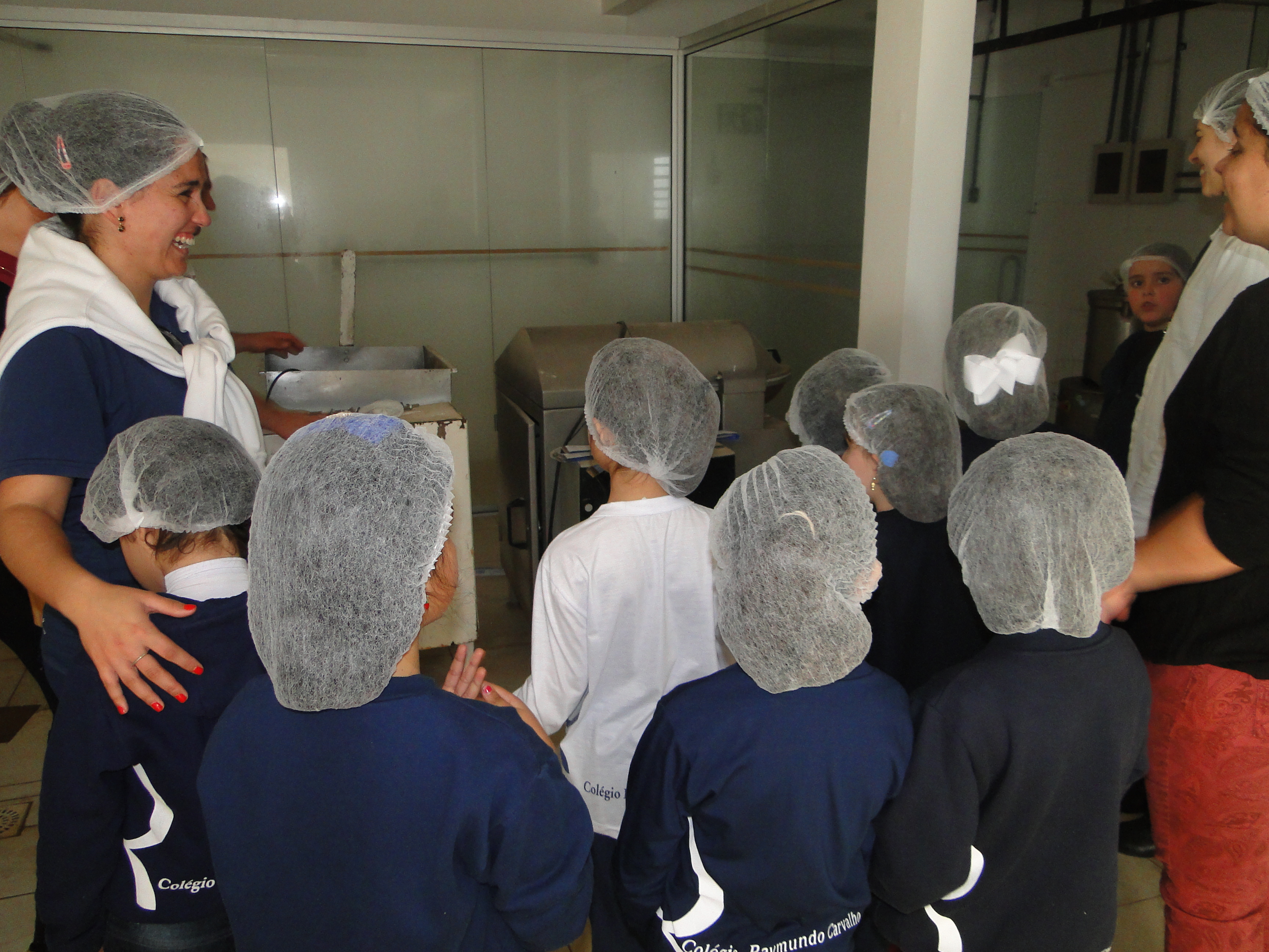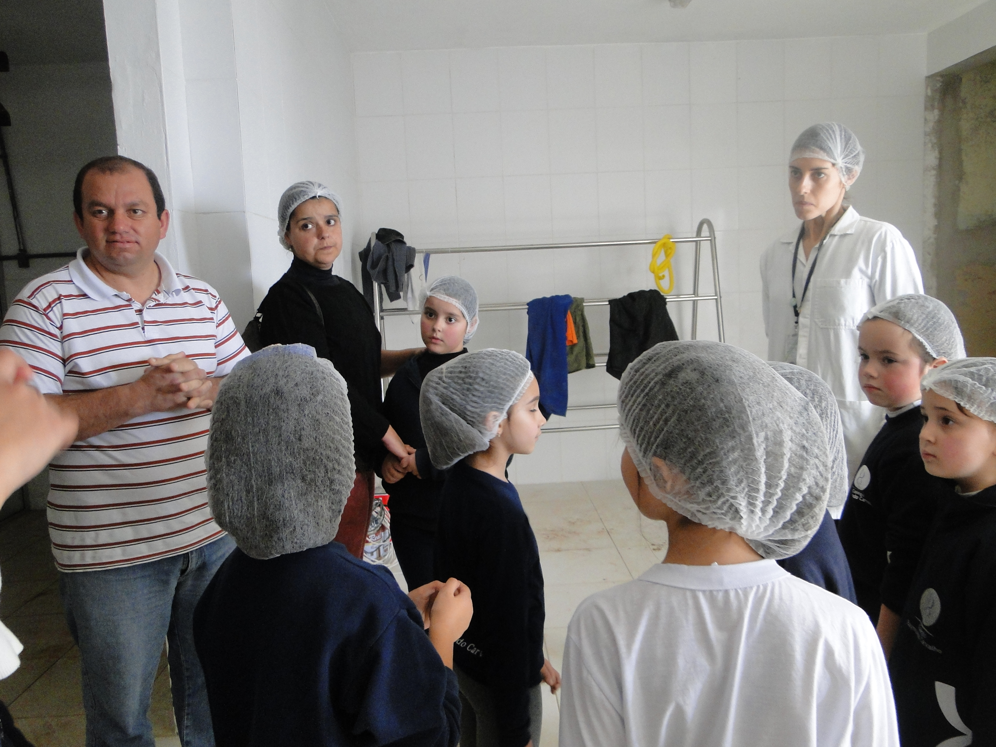 Uma visita mais que especial esteve no Campus ontem, dia 29 de junho. Dez alunos do 1º ano do ensino fundamental do Colégio Prof. Raymundo Carvalho, de Alegrete, juntamente com duas professoras e uma mãe, estiveram no Campus para conhecer a Agroindústria. O objetivo da professora foi mostrar aos pequenos como são produzidos e manipulados os alimentos derivados do leite e da carne, temas esses que a professora vem ensinando à eles desde o início do ano.