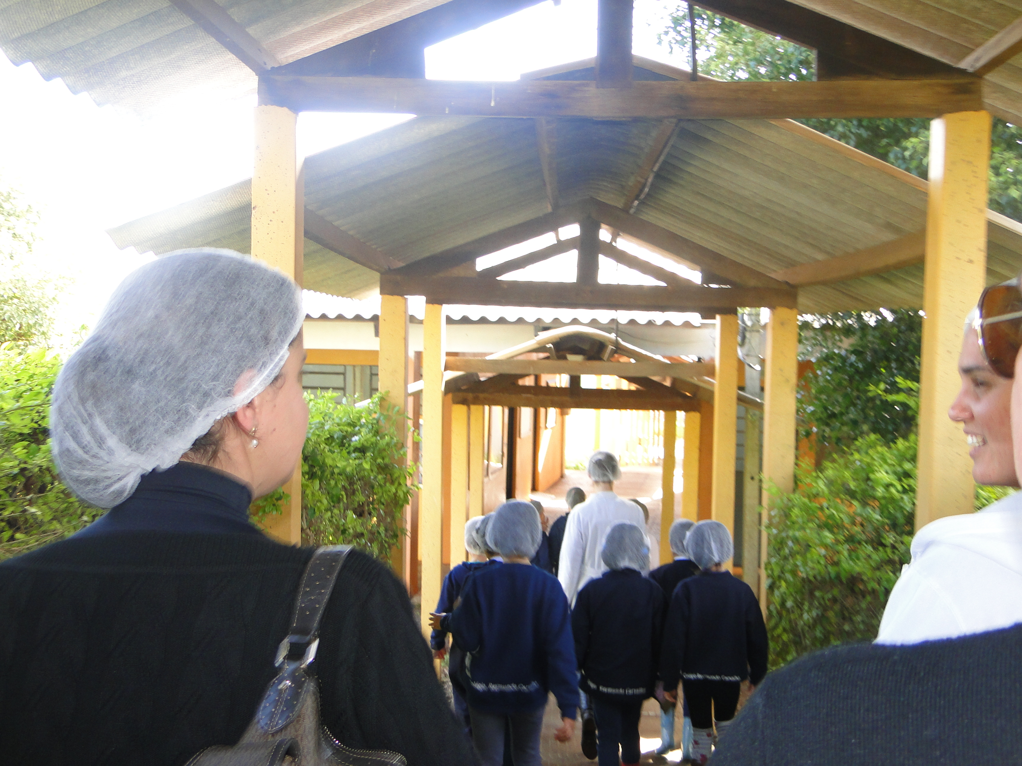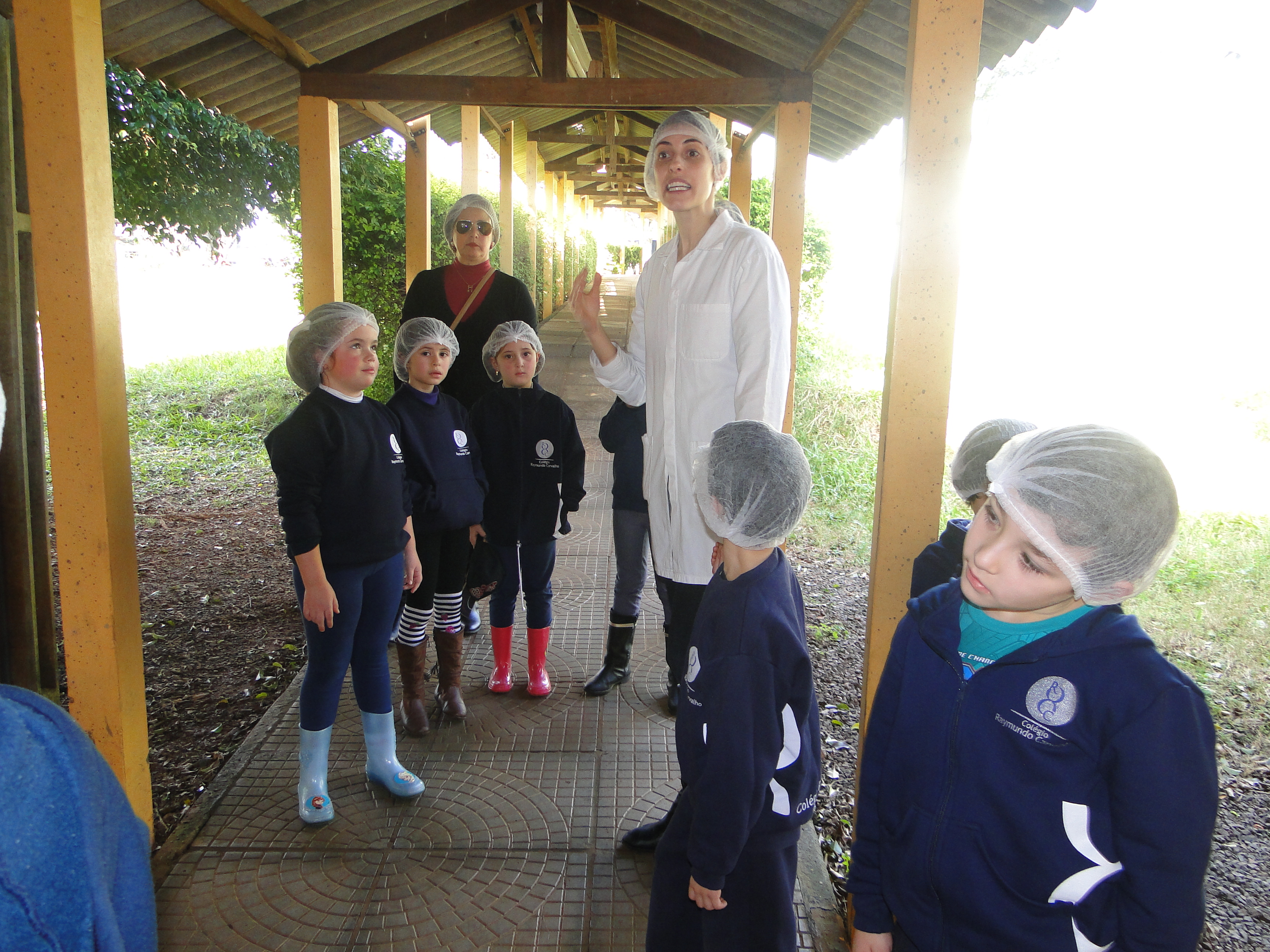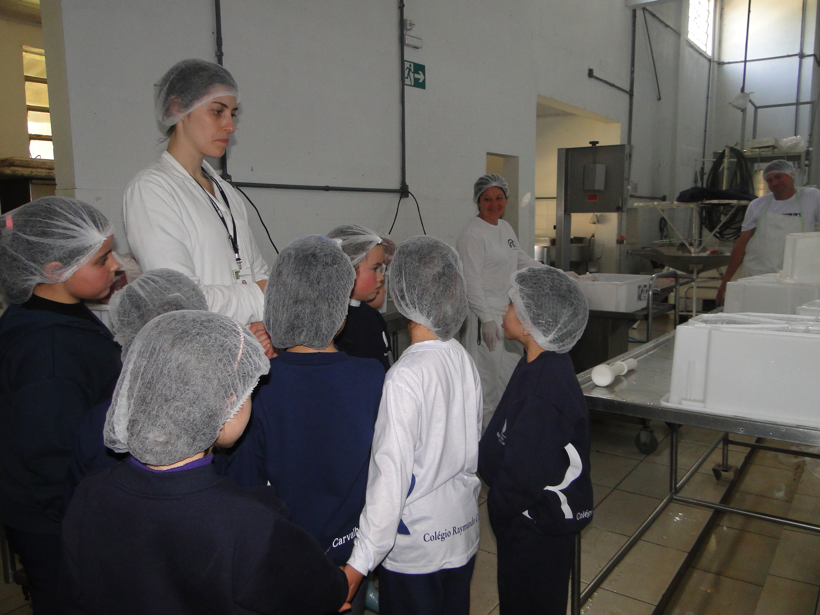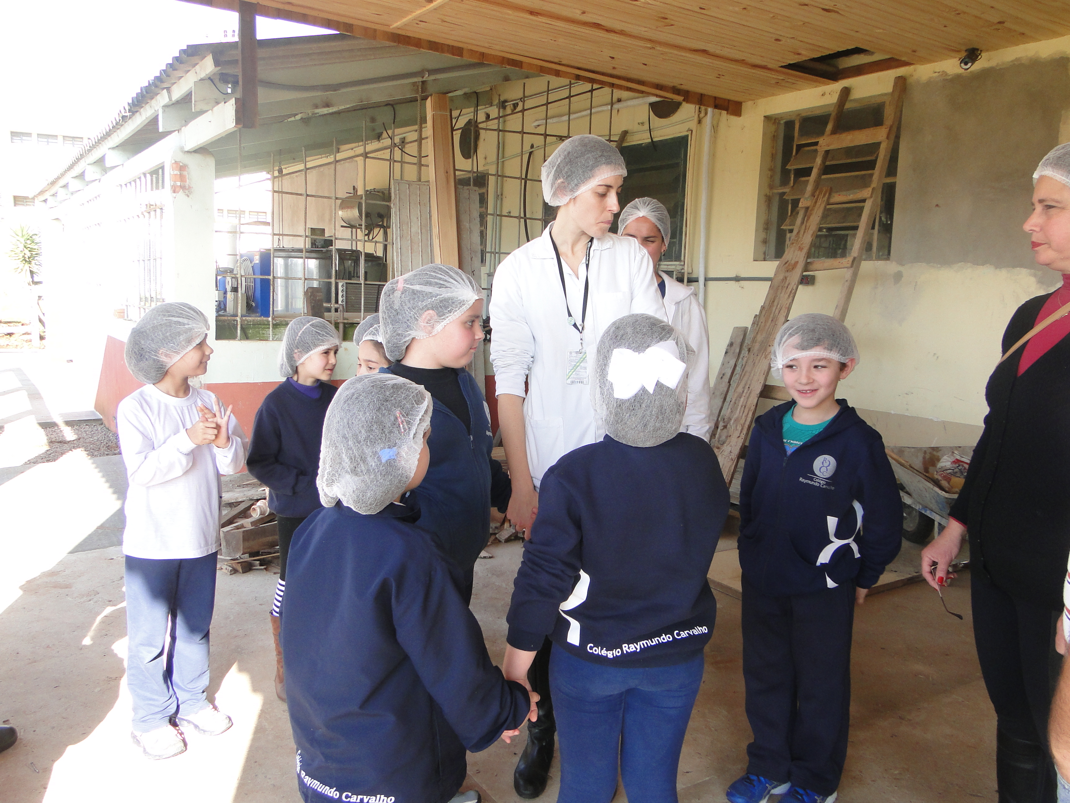 Uma visita mais que especial esteve no Campus ontem, dia 29 de junho. Dez alunos do 1º ano do ensino fundamental do Colégio Prof. Raymundo Carvalho, de Alegrete, juntamente com duas professoras e uma mãe, estiveram no Campus para conhecer a Agroindústria. O objetivo da professora foi mostrar aos pequenos como são produzidos e manipulados os alimentos derivados do leite e da carne, temas esses que a professora vem ensinando à eles desde o início do ano.