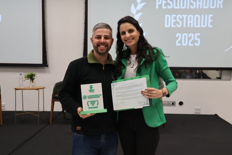 A cerimônia foi conduzida pelo professor Emmanuel Veiga de Camargo, que destacou o caráter inovador da iniciativa. A pró-reitora de Pesquisa, Pós-Graduação e Inovação Thirssa Helena Grando reforçou a importância do reconhecimento: “Essa premiação tem como propósito valorizar e dar maior visibilidade ao trabalho das pesquisadoras e dos pesquisadores que fazem a pesquisa acontecer em nossa instituição. Tenho certeza de que os nomes reconhecidos nesta tarde representam, simbolicamente, todos os que constroem e fortalecem a pesquisa no IFFar”.