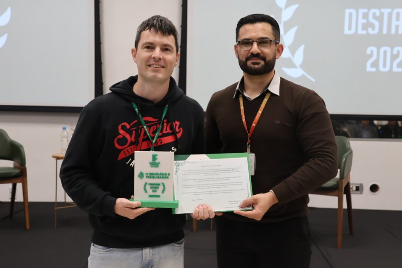 Professor Anderson Saldanha Bueno, do campus Júlio de Castilhos, foi agraciado como Pesquisador Destaque na área das Ciências Biológicas.