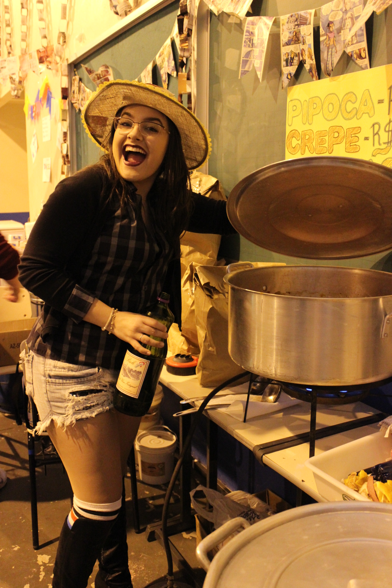 O público presente teve à disposição as comidas típicas da festividade junina, como pipoca, pé de moleque, cachorro quente e, é claro que a bebida da noite foi o quentão.