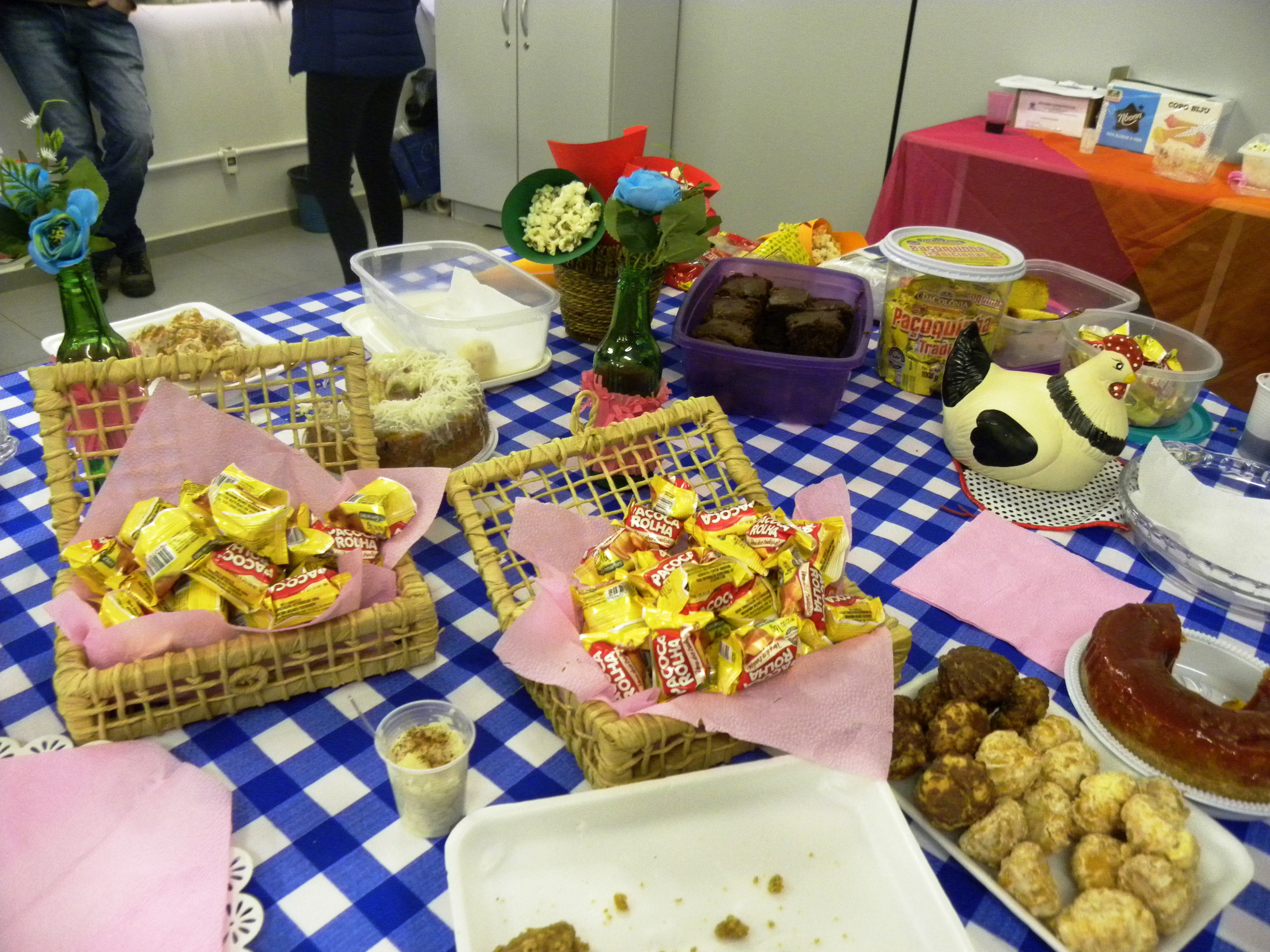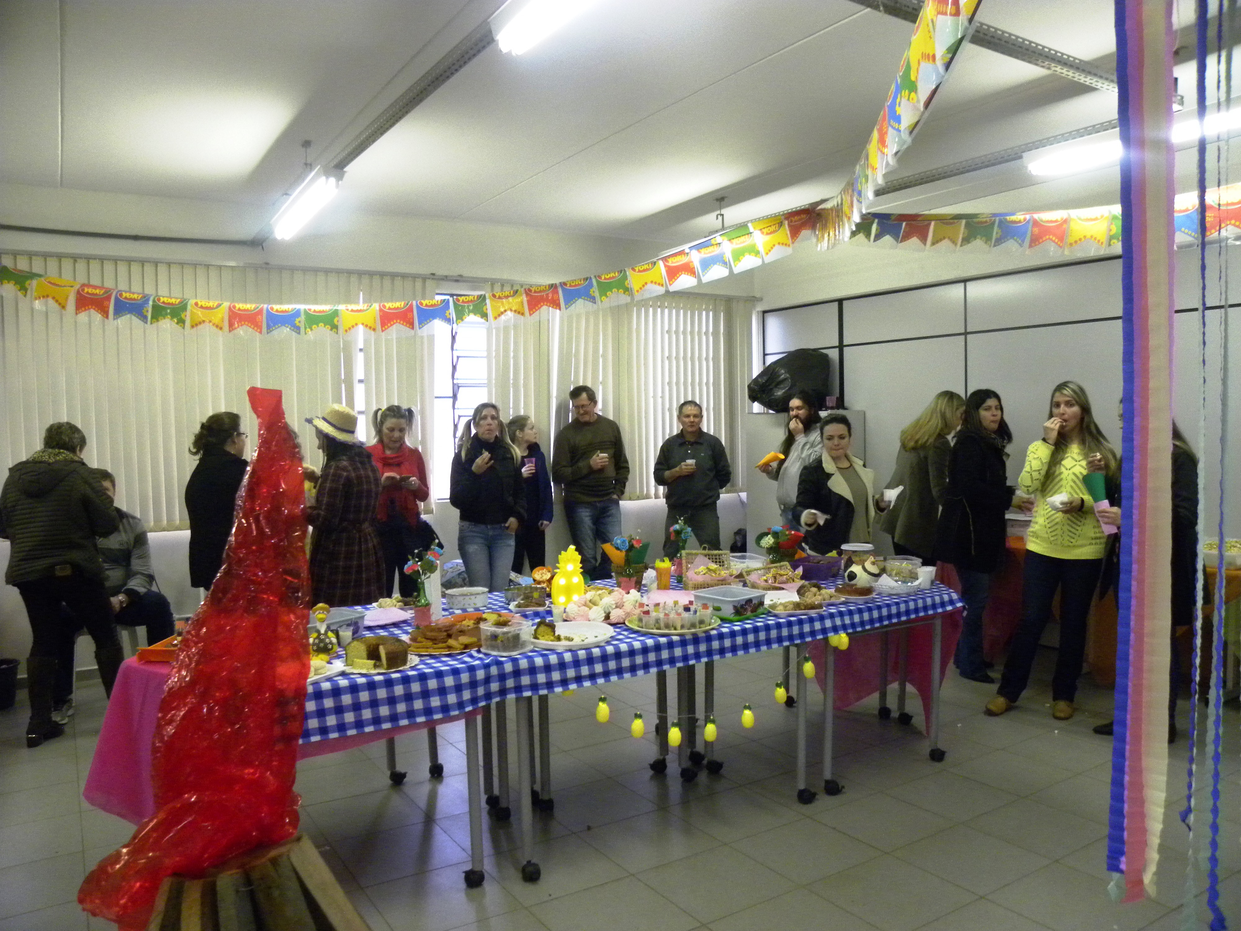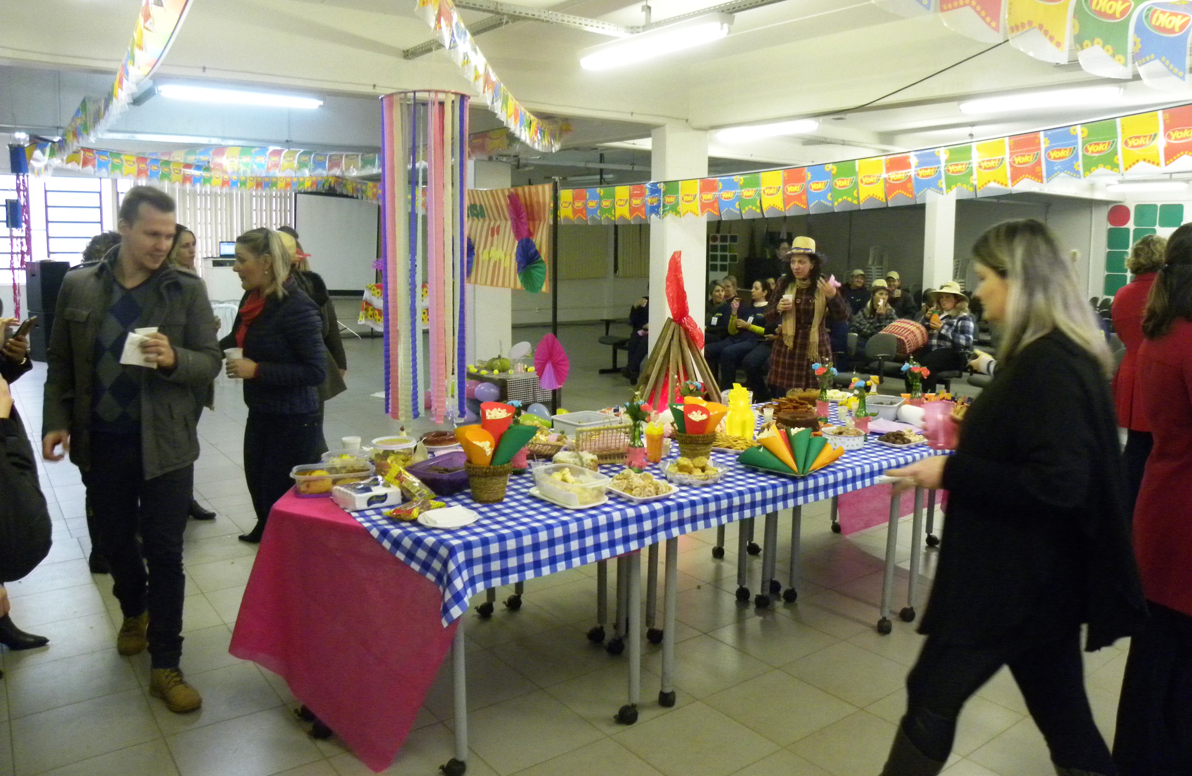 Em ritmo junino, os técnicos, docentes e colaboradores terceirizados se confraternizaram com muita alegria na última quarta-feira (04), em uma festa organizada pela Comissão da Saúde e Qualidade de Vida do Servidor do IFFar – Campus Santa Rosa. Os próprios participantes trouxeram comidas típicas entre outros pratos preparados para o evento, ocorrido no auditório. A tradicional trilha sonora caipira deu ritmo às brincadeiras, como a dança das cadeiras e a corrida do milho na colher. Os vencedores das brincadeiras receberam prêmios simbólicos, como batata-doce, pepino e farinha de milho. A comissão agradece a participação de todos. "Sabemos que é final de semestre e muitos servidores têm atividades para finalizar e mesmo assim dispuseram de seu tempo para prestigiar esse momento junto aos colegas", disse a coordenadora de Gestão de Pessoas, Tânia Tissot.