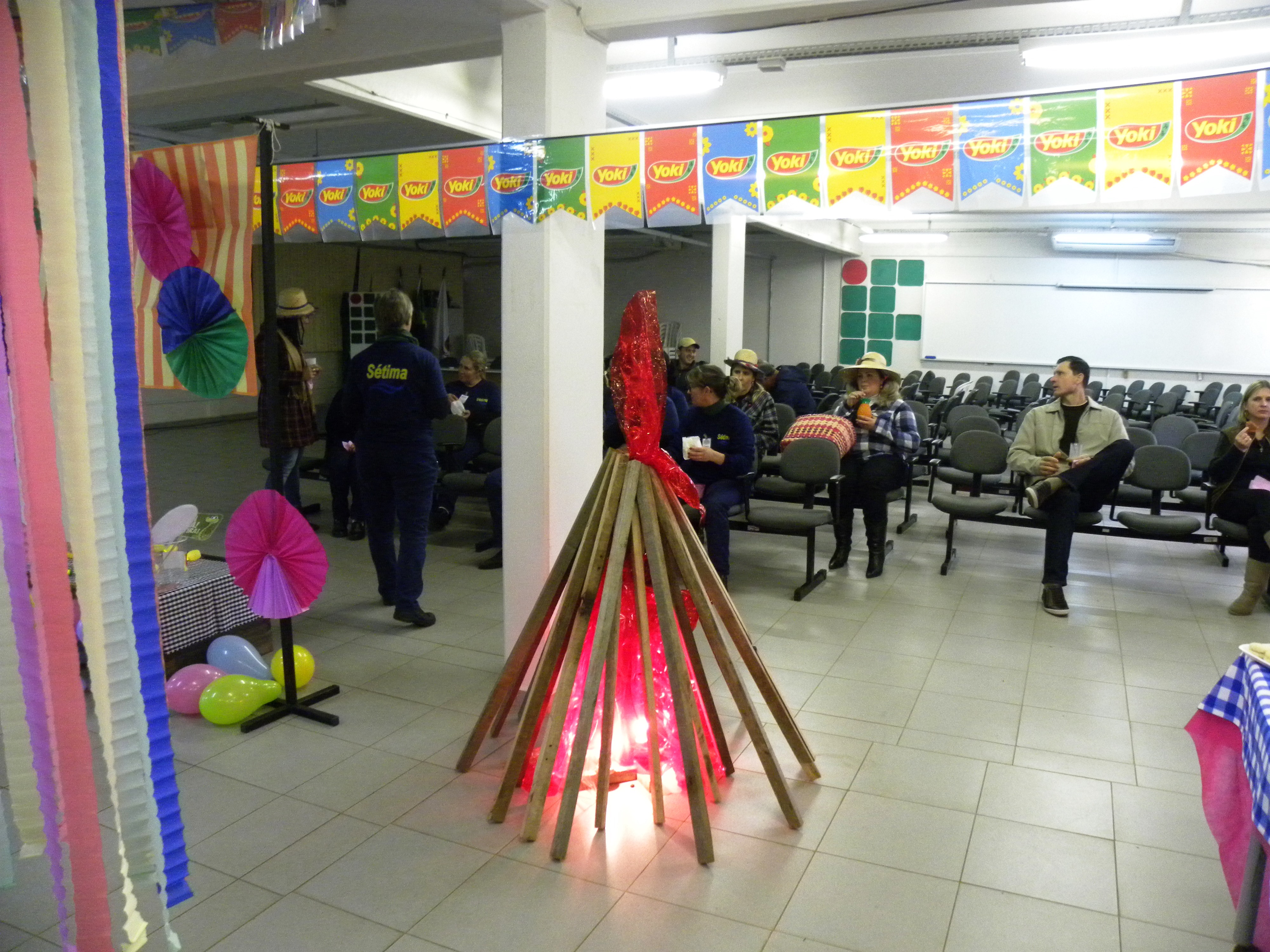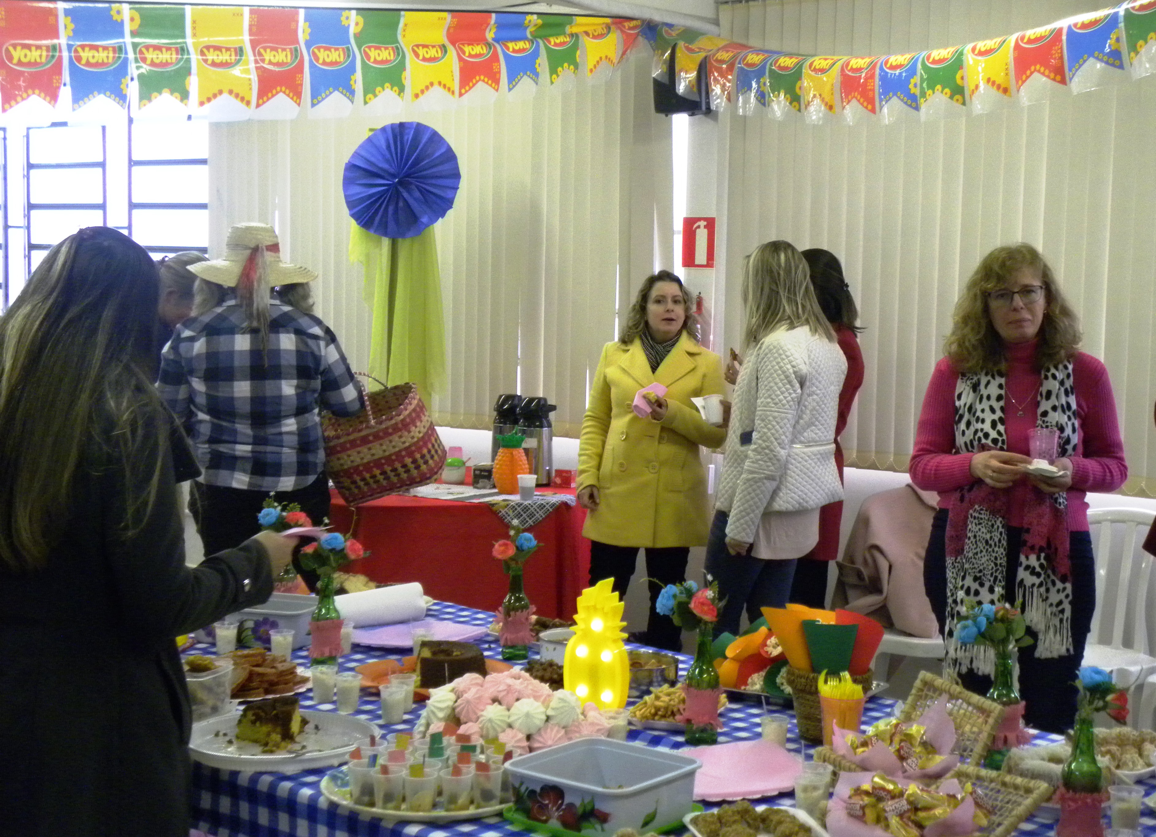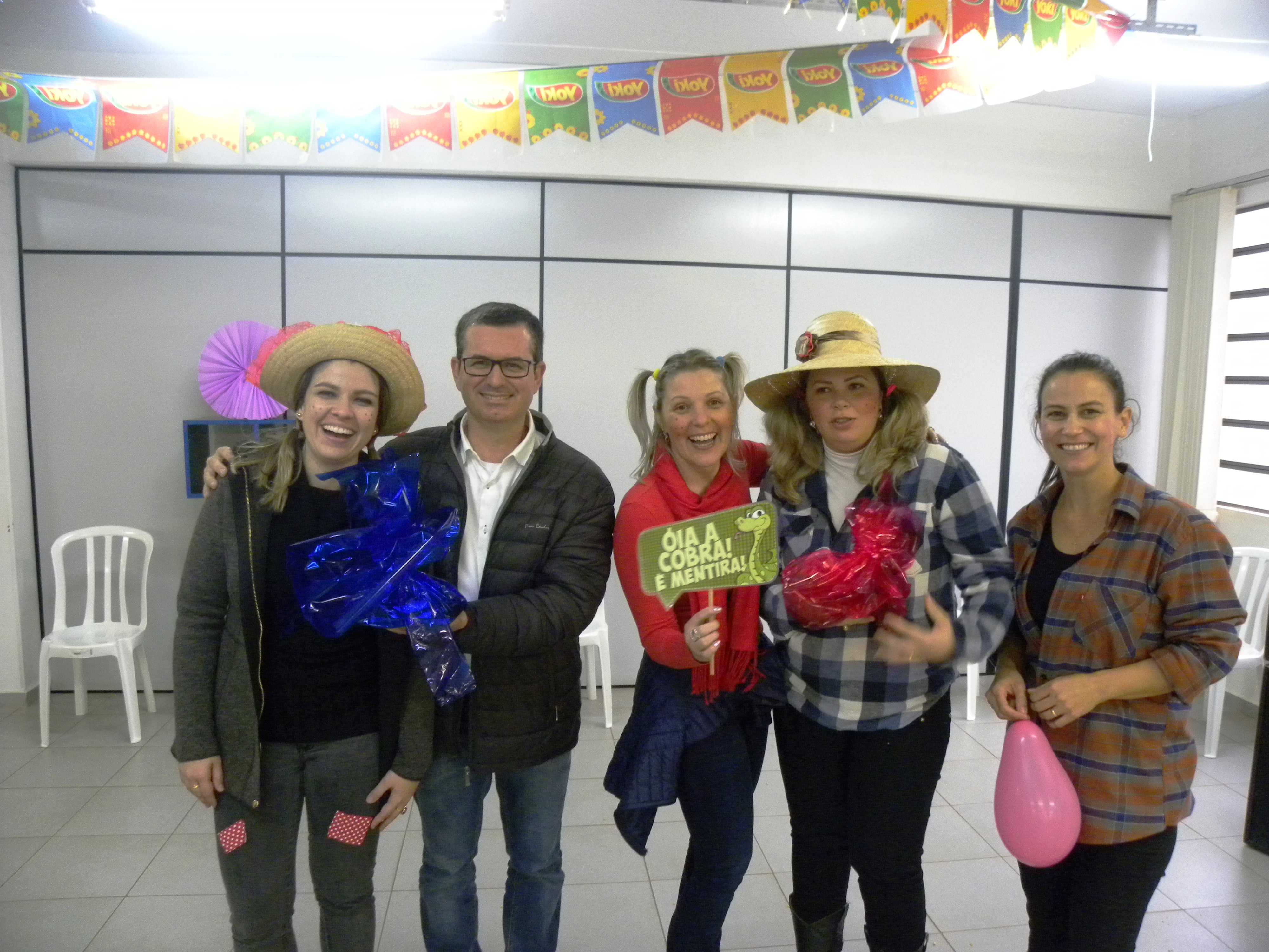 Em ritmo junino, os técnicos, docentes e colaboradores terceirizados se confraternizaram com muita alegria na última quarta-feira (04), em uma festa organizada pela Comissão da Saúde e Qualidade de Vida do Servidor do IFFar – Campus Santa Rosa. Os próprios participantes trouxeram comidas típicas entre outros pratos preparados para o evento, ocorrido no auditório. A tradicional trilha sonora caipira deu ritmo às brincadeiras, como a dança das cadeiras e a corrida do milho na colher. Os vencedores das brincadeiras receberam prêmios simbólicos, como batata-doce, pepino e farinha de milho. A comissão agradece a participação de todos. "Sabemos que é final de semestre e muitos servidores têm atividades para finalizar e mesmo assim dispuseram de seu tempo para prestigiar esse momento junto aos colegas", disse a coordenadora de Gestão de Pessoas, Tânia Tissot.