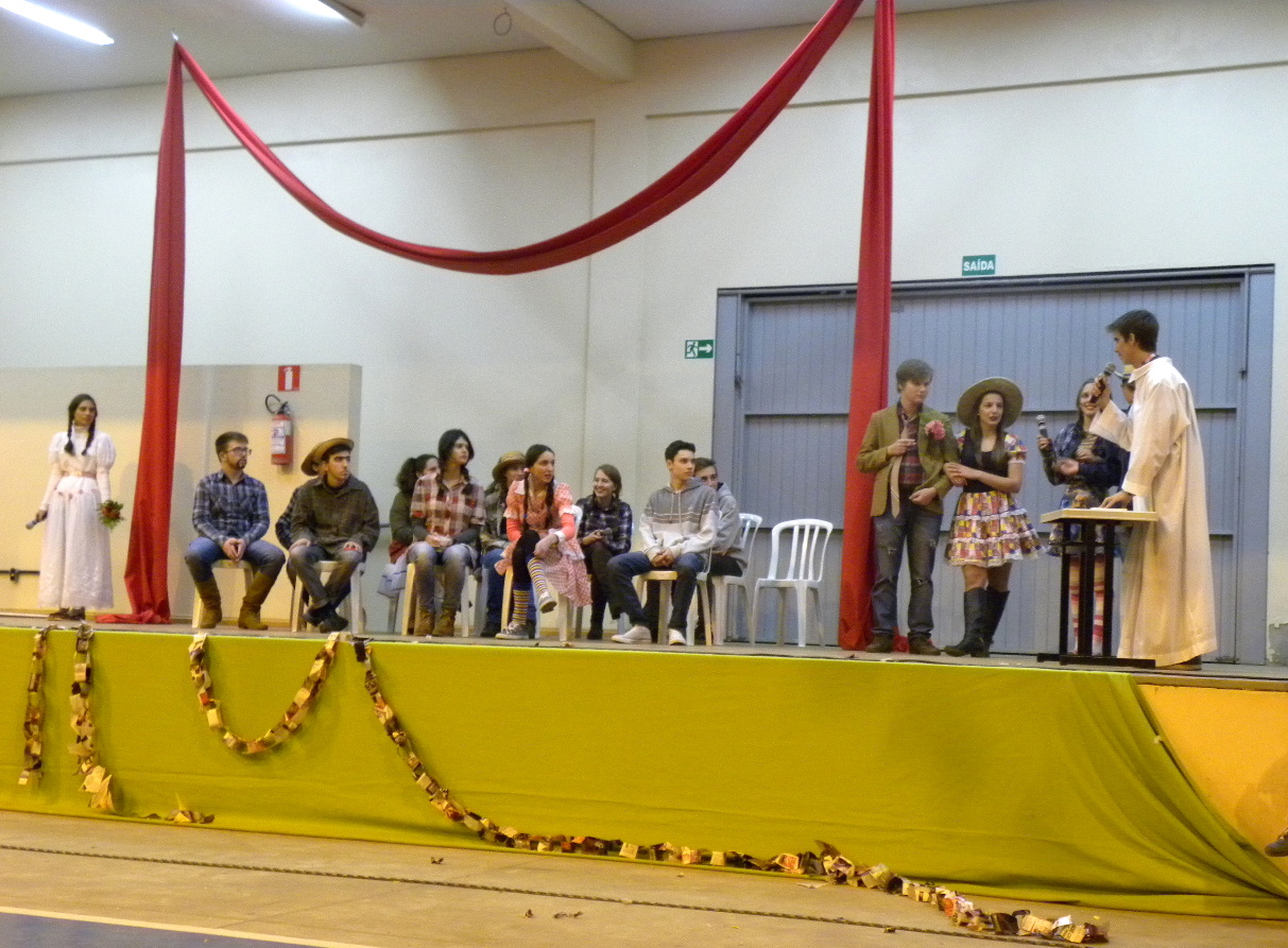 A comunidade acadêmica do IF Farroupilha - Campus Santa Rosa reuniu-se no último sábado (18) para a sua tradicional Festa Junina - o Arraiá Farroupilha, ocorrido no ginásio do campus. Com o apoio da Assistência Estudantil, os alunos dos cursos integrados, subsequentes e superiores montaram barracas de comidas típicas, prepararam brincadeiras, o desfile de casais caipiras, a quadrilha e o casamento caipira. Além da diversão e integração com a comunidade em geral, o evento foi uma oportunidade dos alunos arrecadarem fundos para as formaturas. Confira nas imagens o que teve no Arraiá Farroupilha 2016.