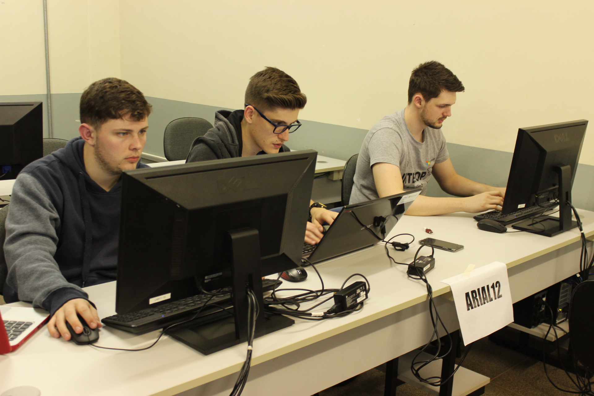 Durante três horas de competição, os trios integrados por alunos de Sistemas para Internet definiram suas estratégias para resolver 10 problemas fornecidos pela Comissão Organizadora (CO).