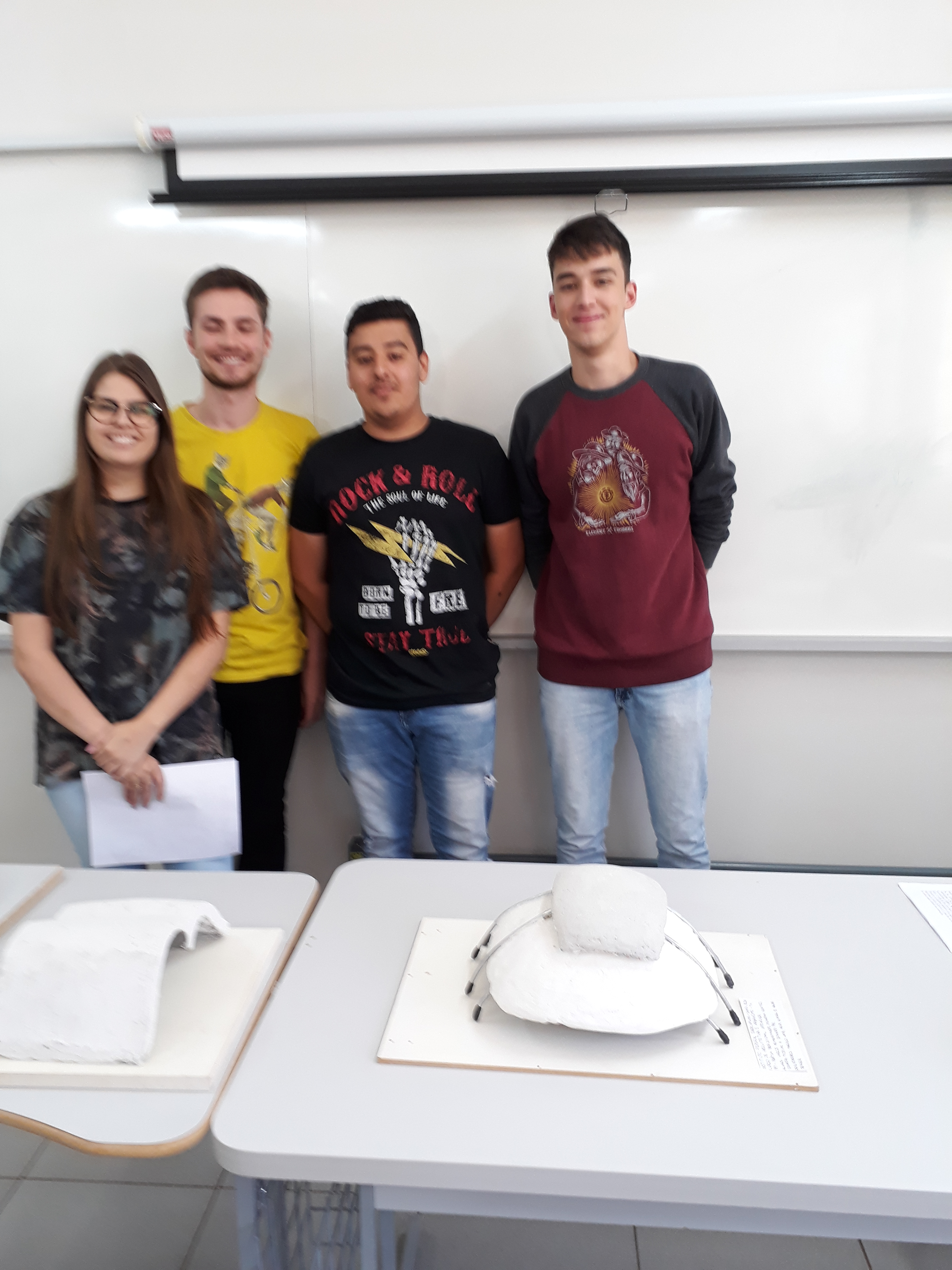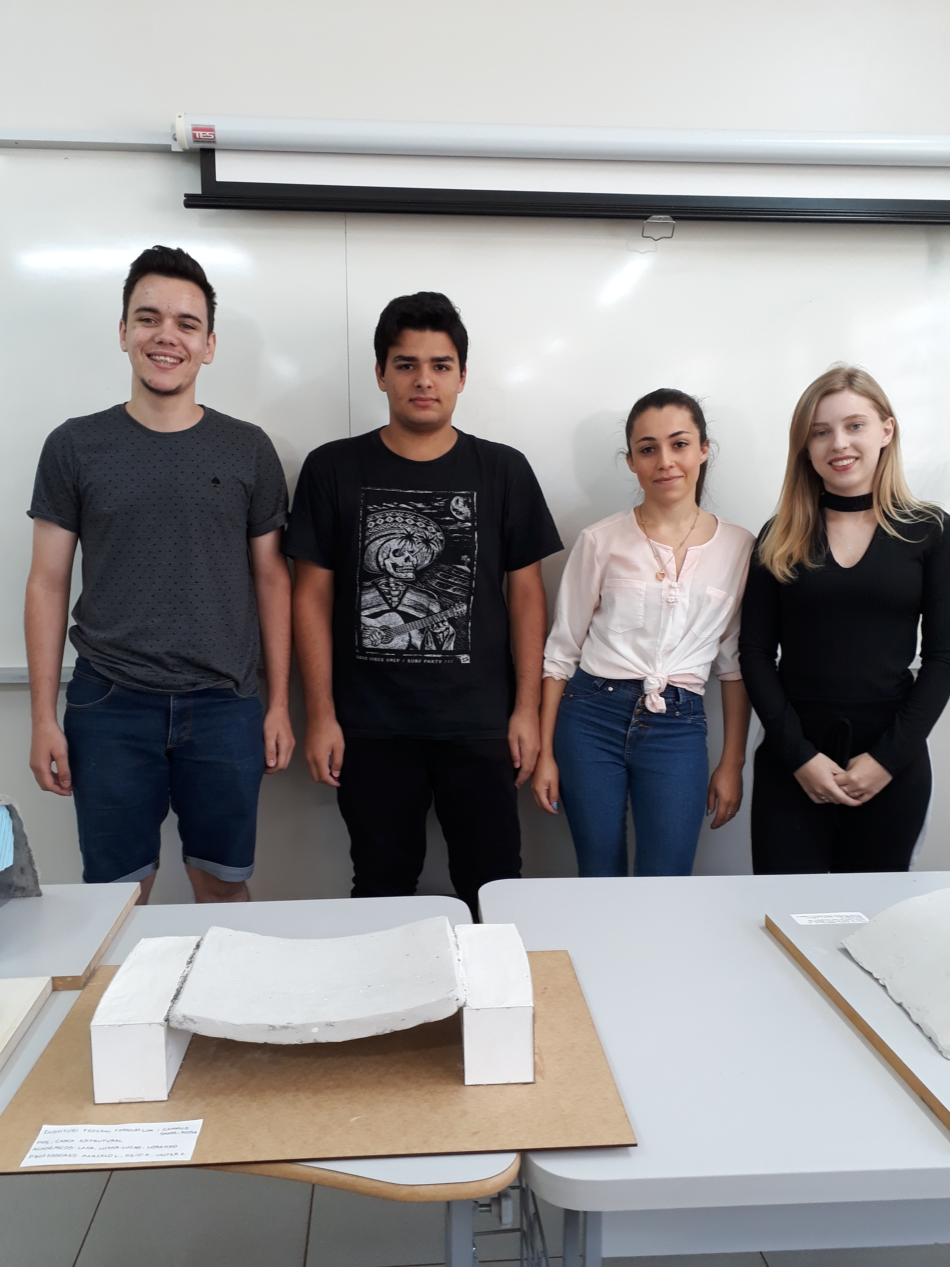 Na tarde desta segunda-feira (19), os alunos do curso de Arquitetura e Urbanismo, turma 4, apresentaram em aula, o resultado da atividade Prática Profissional Integrada (PPI), resultante de um estudo de uma estrutura em Casca, envolvendo as disciplinas de Sistemas Estruturais I, ministrada pela professora Neidi Kunkel, Materiais e Técnicas Construtivas II, pelo professor Valter A. Senger e Metodologia Científica, pelo professor Marcelo Eder Lamb.