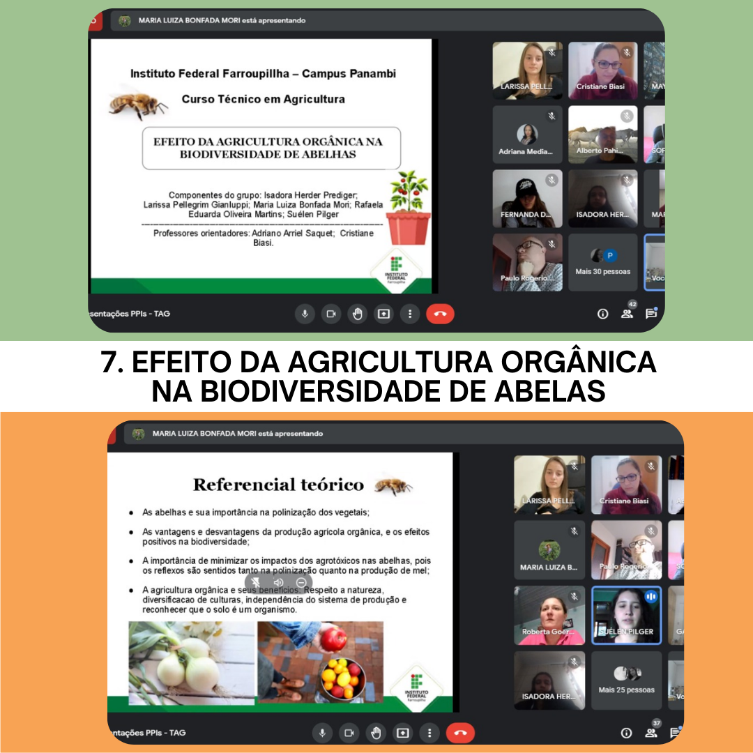 A turma do Curso Técnico em Agricultura do IFFar – Campus Panambi realizou sua primeira Prática Profissional Integrada (PPI), que articula conhecimentos de diferentes áreas e disciplinas em um único trabalho. Organizados em 7 grupos, com 5 integrantes cada, os projetos abordaram assuntos relacionados à “Produção Orgânica”, tema central da PPI. Dentro dessa temática foi abordada a produção orgânica de frutas, hortaliças, sua relação com insetos (abelhas), a segurança alimentar e a preservação do meio ambiente.