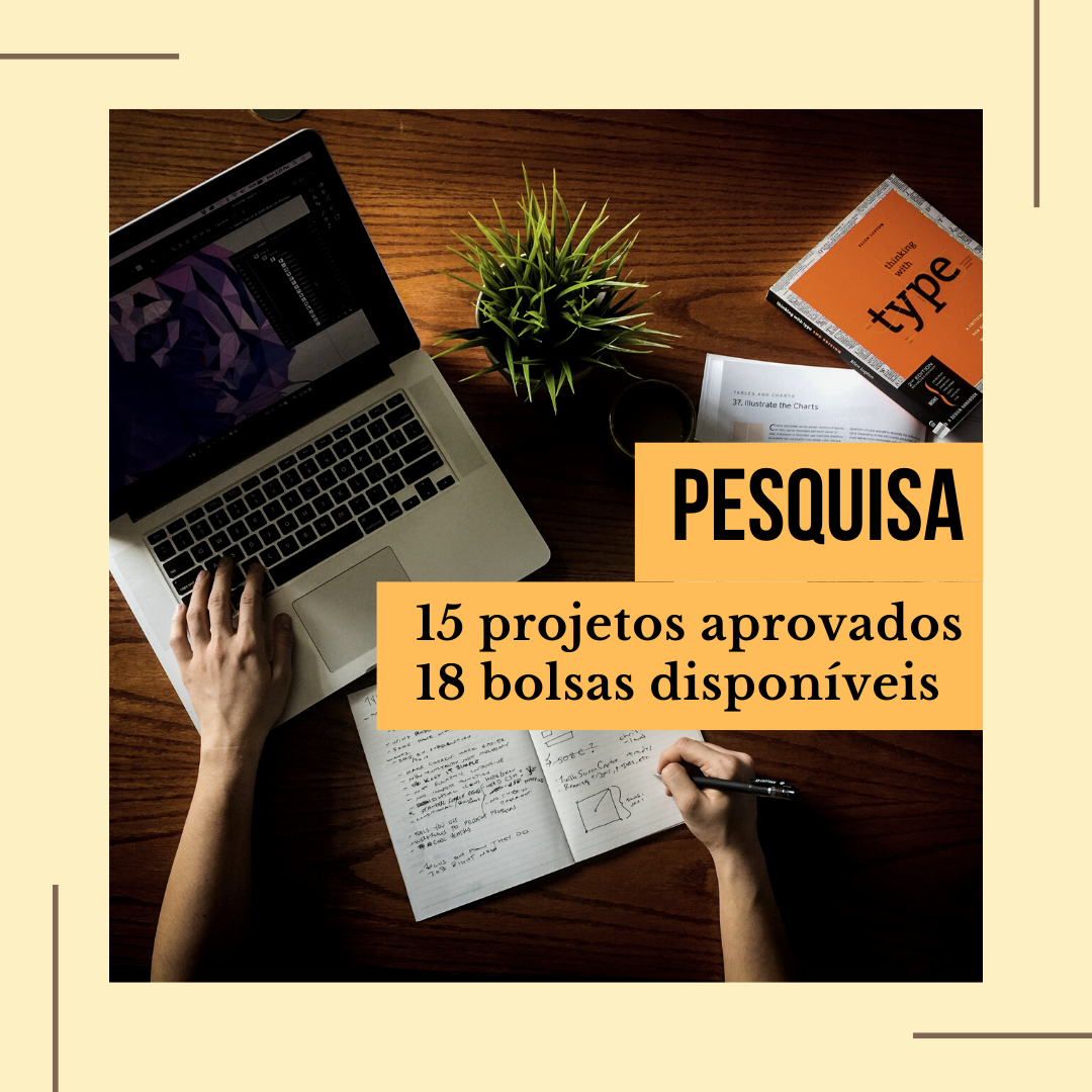 Número de bolsas: 7 bolsas para graduação, 2 bolsas para Ensino Médio e 1 bolsa para Pós-Graduação, com 1 ano de duração.