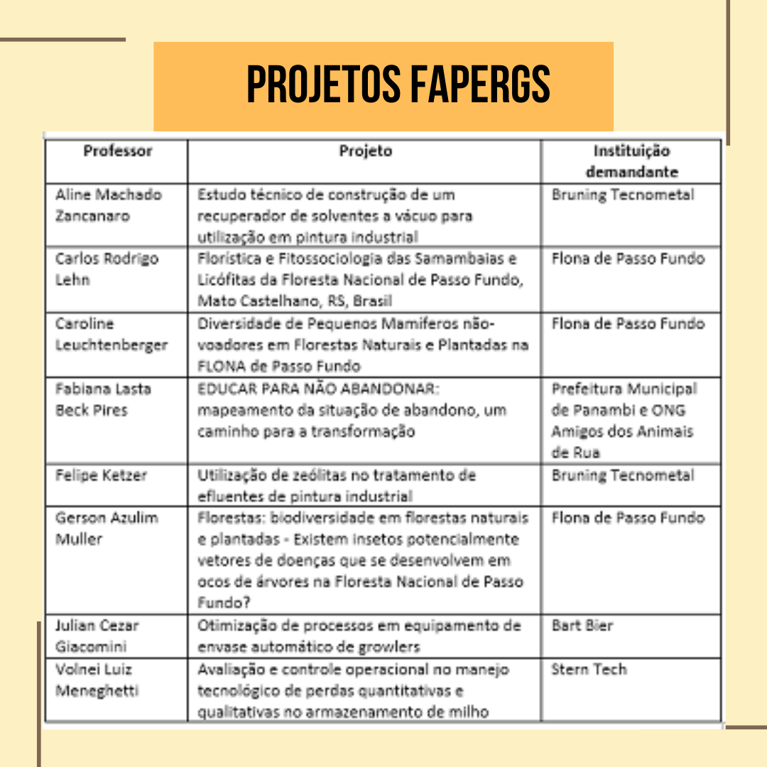 Projetos de Pesquisa Aprovados junto à Fapergs