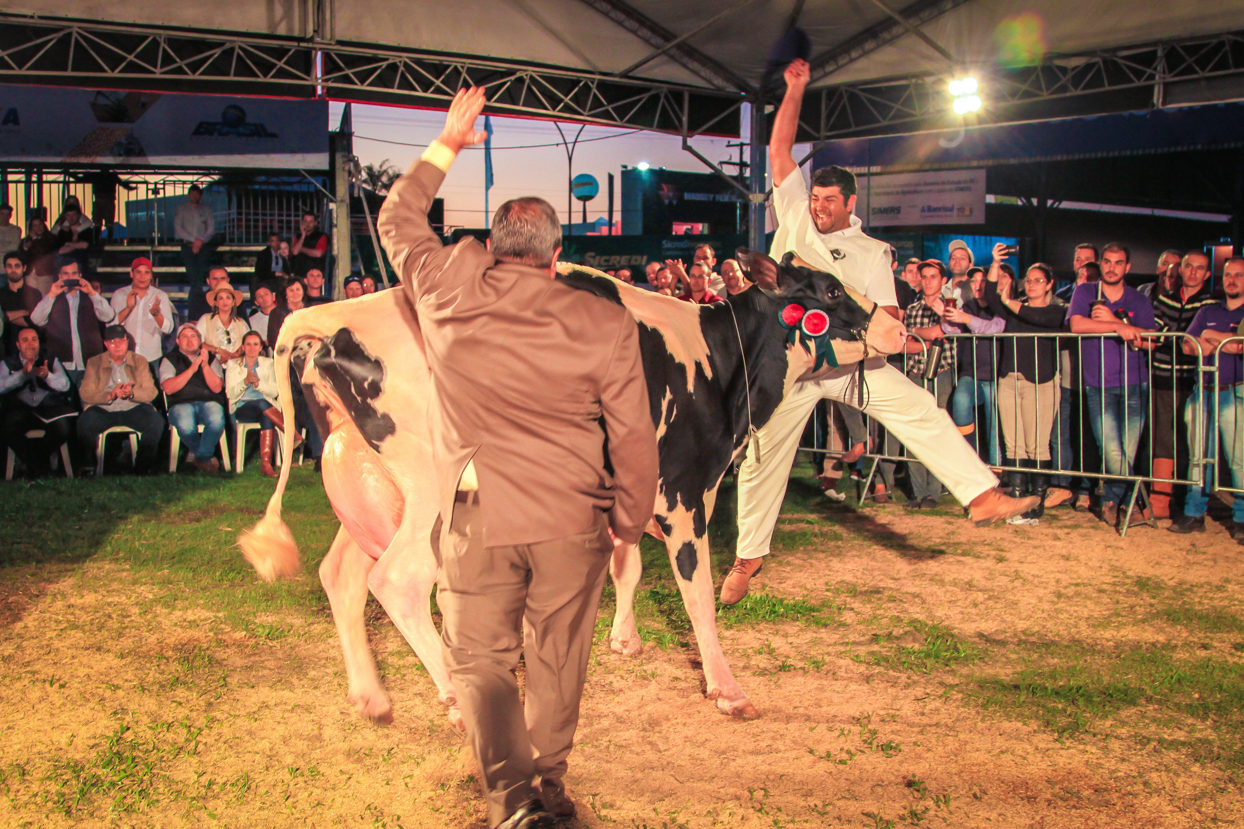 Na pista de julgamento a participação do IFFar Campus Alegrete foi um sucesso. No julgamento da raça Girolando, conduzido pela jurada oficial da Associação Brasileira dos Criadores de Girolando, a mineira Lilian Jacinto, os alunos e o professor Emmanuel vibraram com a conquista dos títulos de campeã bezerra júnior, campeã bezerra intermediária e reservada melhor fêmea jovem da raça. Tais resultados confirmam a qualidade zootécnica e o excelente preparo dos animais apresentados. A fêmea “IFFCA Atena Ivete Snowrush 1/2 G501", primeiro produto da raça Girolando registrado pela instituição, foi muito elogiada em pista. De acordo com a jurada, a fêmea poderia estar nas exposições mais expressivas da raça em qualquer lugar do país. Outro ponto que merece destaque é a parceria firmada com a Cabanha Santa Clara de Humaitá (RS). A propriedade que conquistou o título de grande campeã da raça Holandesa na Expointer 2016, doou ao IFFar campus Alegrete, uma aspiração da fêmea vencedora. A partir disto, o instituto terá acesso à genética da matriz para aprimoramento do seu plantel Holandês.