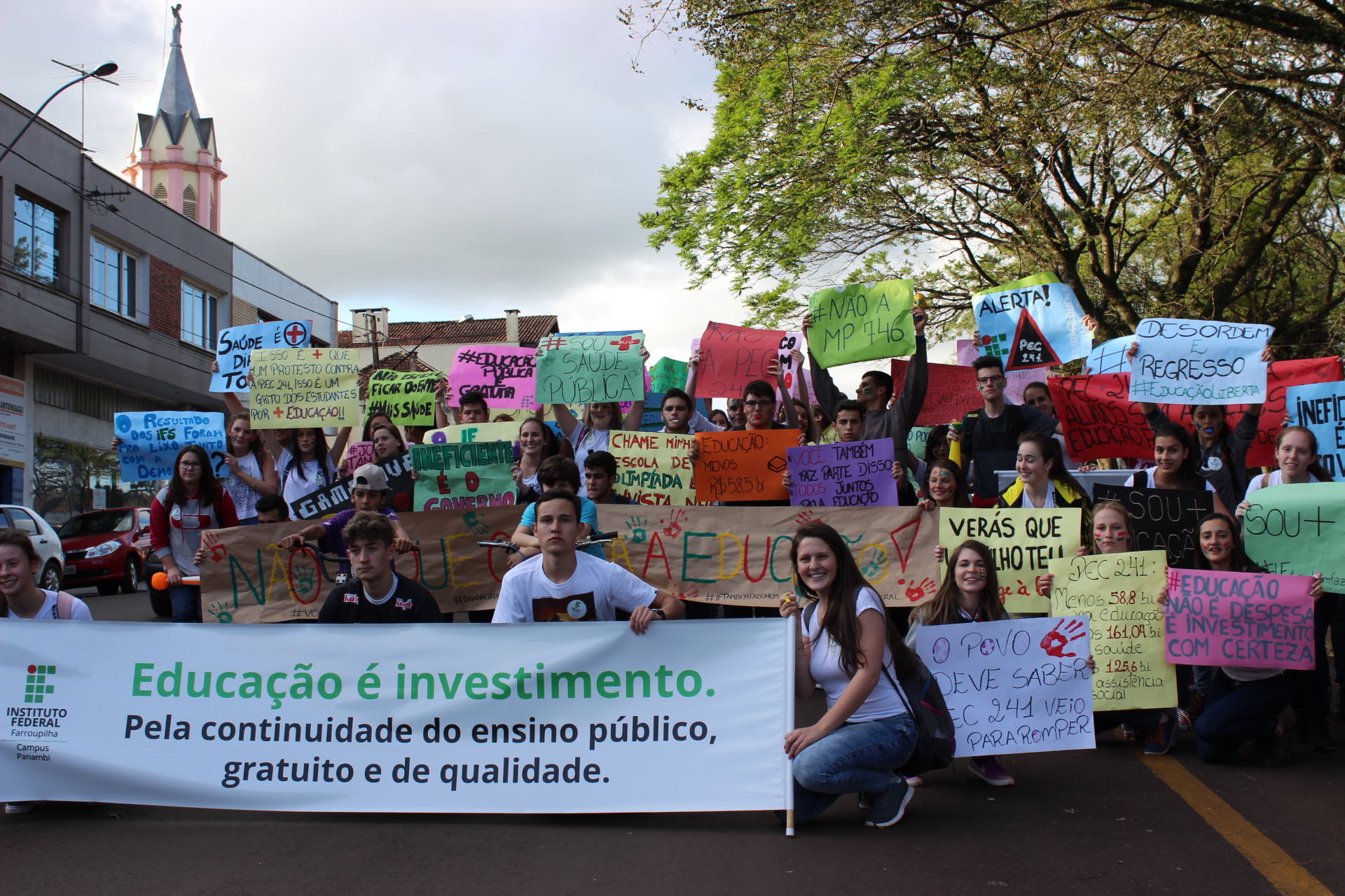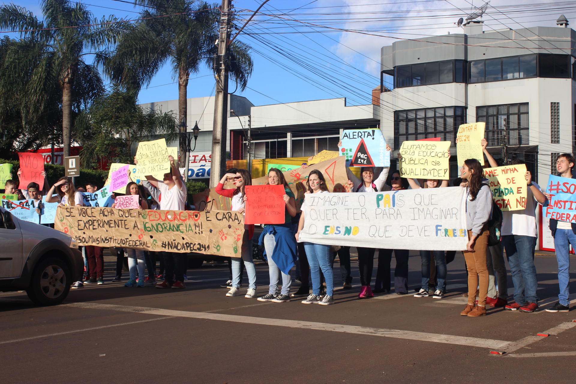 No dia 06/10, quinta-feira, mais de 250 alunos do Instituto Federal Farroupilha – Campus Panambi realizaram uma mobilização em prol da continuidade da educação pública, gratuita e de qualidade, dirigindo-se do Campus até a Praça Central.