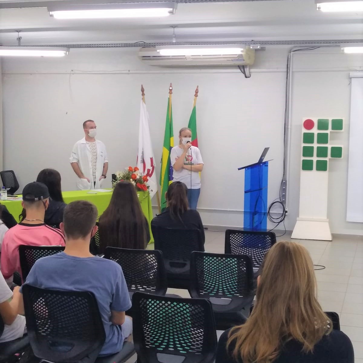O egresso do curso Técnico em Edificações, Roberto Lenz, hoje acadêmico do bacharelado em Enfermagem (Setrem), retornou ao campus a convite da Assistência Estudantil para falar sobre medo, ansiedade, uso de álcool e drogas e preocupações trazidas pelo período de pandemia.