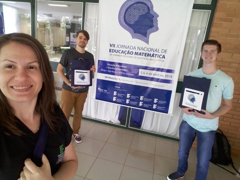 Nesta terça-feira (03 de abril), a aluna Dayane Flores da primeira turma do Curso de Licenciatura em Computação, e os alunos Anderson Daniel Stochero e Samuel Müller Forrati da primeira turma do Curso Superior de Tecnologia em Sistemas para Internet, apresentaram trabalhos na VII Jornada Nacional de Educação Matemática que ocorreu na Universidade de Passo Fundo - Passo Fundo/RS.