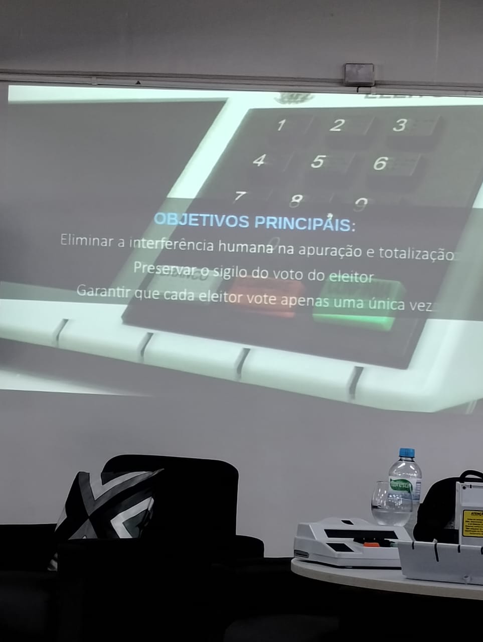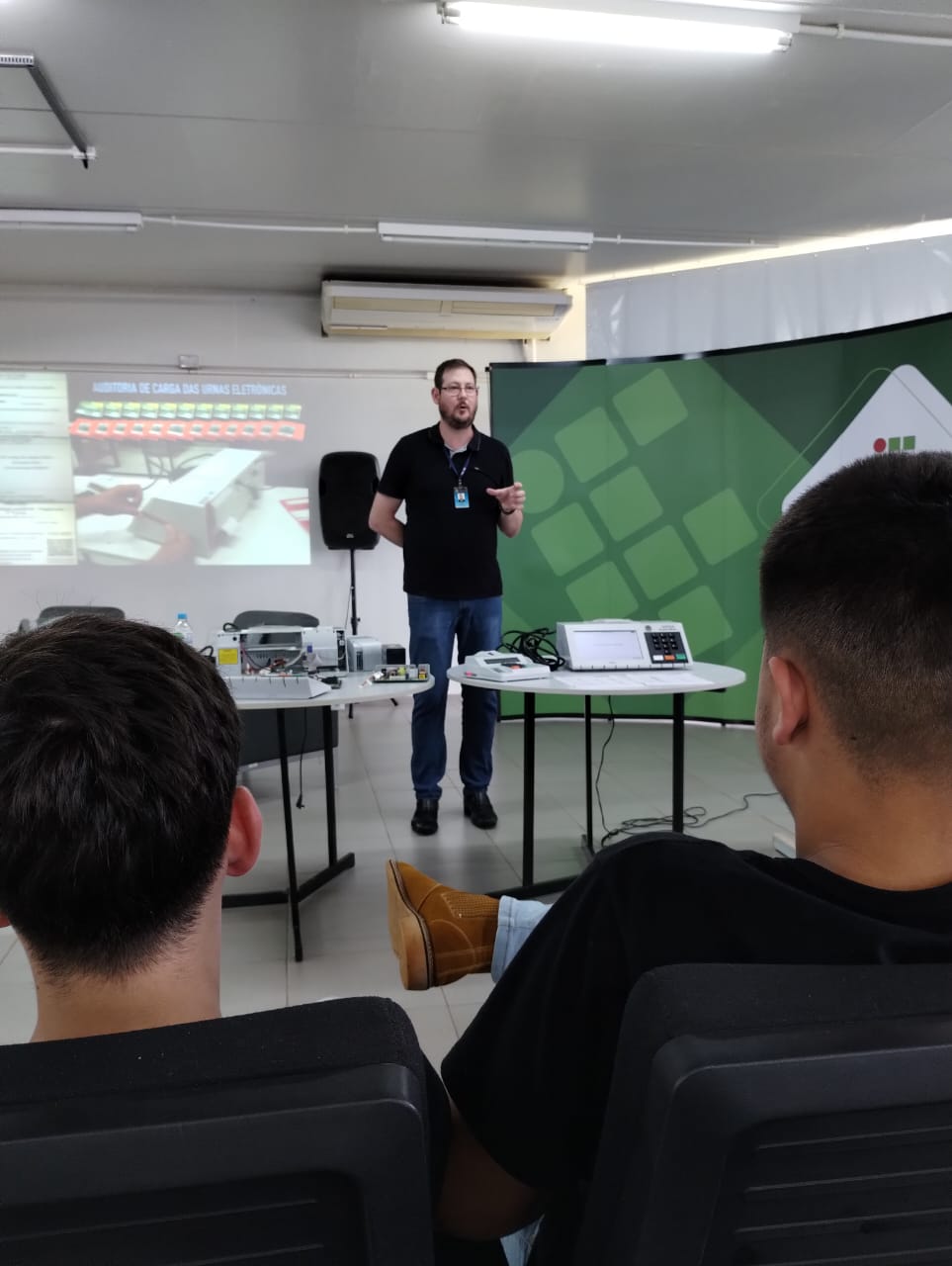 No dia 20/10, ocorreu o encerramento do projeto, com a oficina "Segurança do Processo de Votação Eletrônica", ministrada pelo representante do Cartório Eleitoral de Panambi, Sr. Maciel Gaspar Klock. A atividade foi realizada em dois momentos, sendo a parte inicial destinada a uma explicação sobre o histórico do desenvolvimento da urna eletrônica brasileira, com ênfase às mais de 30 camadas de proteção da urna contra fraudes. O segundo momento da oficina contou com uma atividade mais prática, na qual os estudantes puderam observar a estrutura de hardware da urna.
