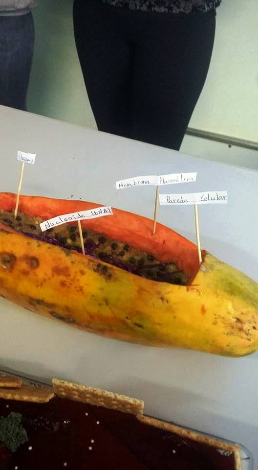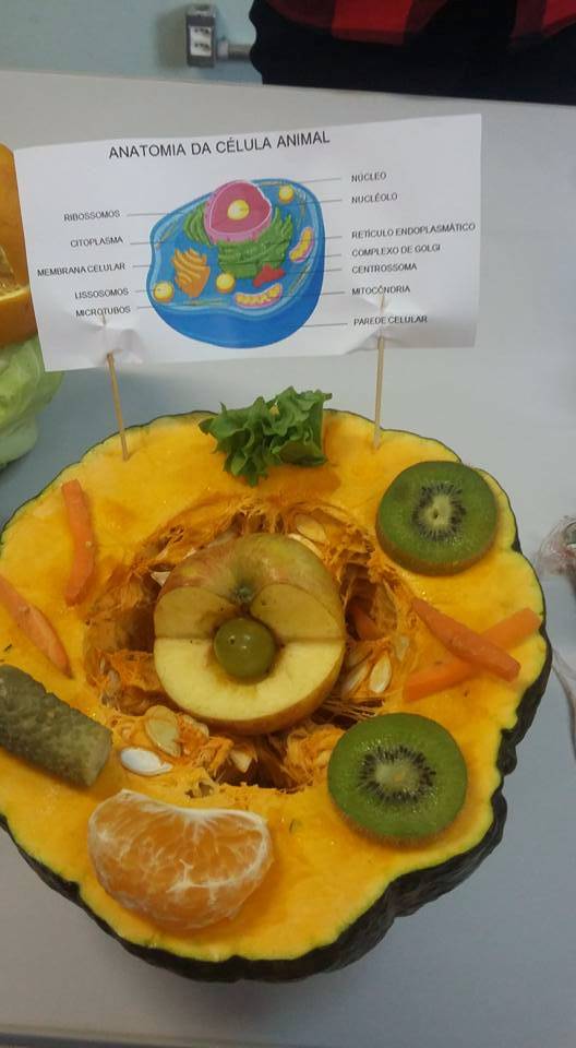 Os acadêmicos do 1º semestre da Licenciatura em Ciências Biológicas finalizaram o primeiro semestre com a apresentação de maquetes de células comestíveis, dentro da disciplina de Biologia Celular. A atividade foi proposta de um projeto de ensino intitulado "Alimentação saudável com foco nos alunos do IFFar", sob a orientação da professora Daniela Copetti Santos e da aluna orientanda Luana Carvalho, do 5º semestre do mesmo curso. A sugestão foi que os alunos criassem a maquete de uma estrutura celular com alimentos saudáveis semelhantes aos das organelas apresentadas em sala de aula.