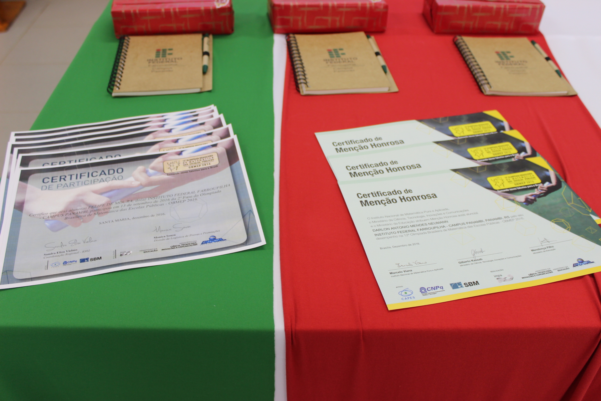 Dentre os mais de 17 milhões de alunos participantes, três discentes do foram premiados com o certificado de Menção Honrosa, estando entre os 1000 melhores alunos do país: Darlon Antonio Mendes Neumann, Felipe de Moura e Lucas Darlan Windmoller. Outras três alunas receberam o certificado de participação na segunda fase: Djosi Von Muhlen, Damari Graff e Yasmin da Cruz de Matos. Durante a atividade também foram premiadas as turmas classificadas na Olimpíada Internacional Matemática Sem Fronteiras (OIMSF), cujo resultado final será divulgado no dia 19 de junho.