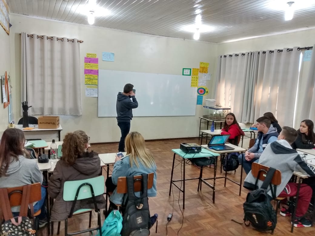 Alunos de 9º ano da Escola Municipal de Ensino Fundamental Dona Leopoldina, de Panambi, estão sendo contemplados com o curso “Arduino e suas aplicações práticas”. O curso é ofertado como projeto de extensão, sendo ministrado pelo aluno extensionista João Vitor da Luz Silveira, egresso da escola e atualmente estudante do 1º ano do Curso Técnico em Automação Industrial do IFFar – Campus Panambi. A orientação do projeto é do professor Julian Cezar Giacomini.