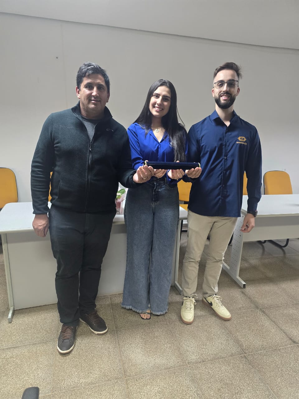 Já na noite de 08 de abril, foi a vez de colar grau os formandos Carolina da Silva, Paulo Roberto Pereira Pereira e Victor Machado Pezzini, com a realização da outorga de gabinete no Auditório do Prédio A. Nesta ocasião, também se formaram duas estudantes do curso de Agronomia. Estiveram presentes na solenidade o Diretor de Pesquisa, Extensão e Produção (DPEP) e professor Roberto Oliveira, representando a Diretora-Geral Sílvia Montagner, a Coordenadora-Geral de Ensino Carine Manfio, a Coordenadora do Curso de Bacharelado em Administração Franciane Cougo da Cruz Ceretta, o Coordenador do Curso de Bacharelado em Agronomia Leandro Oliveira da Costa, a Chefe de Gabinete Maria Fernanda Piovesan Vianna e familiares.