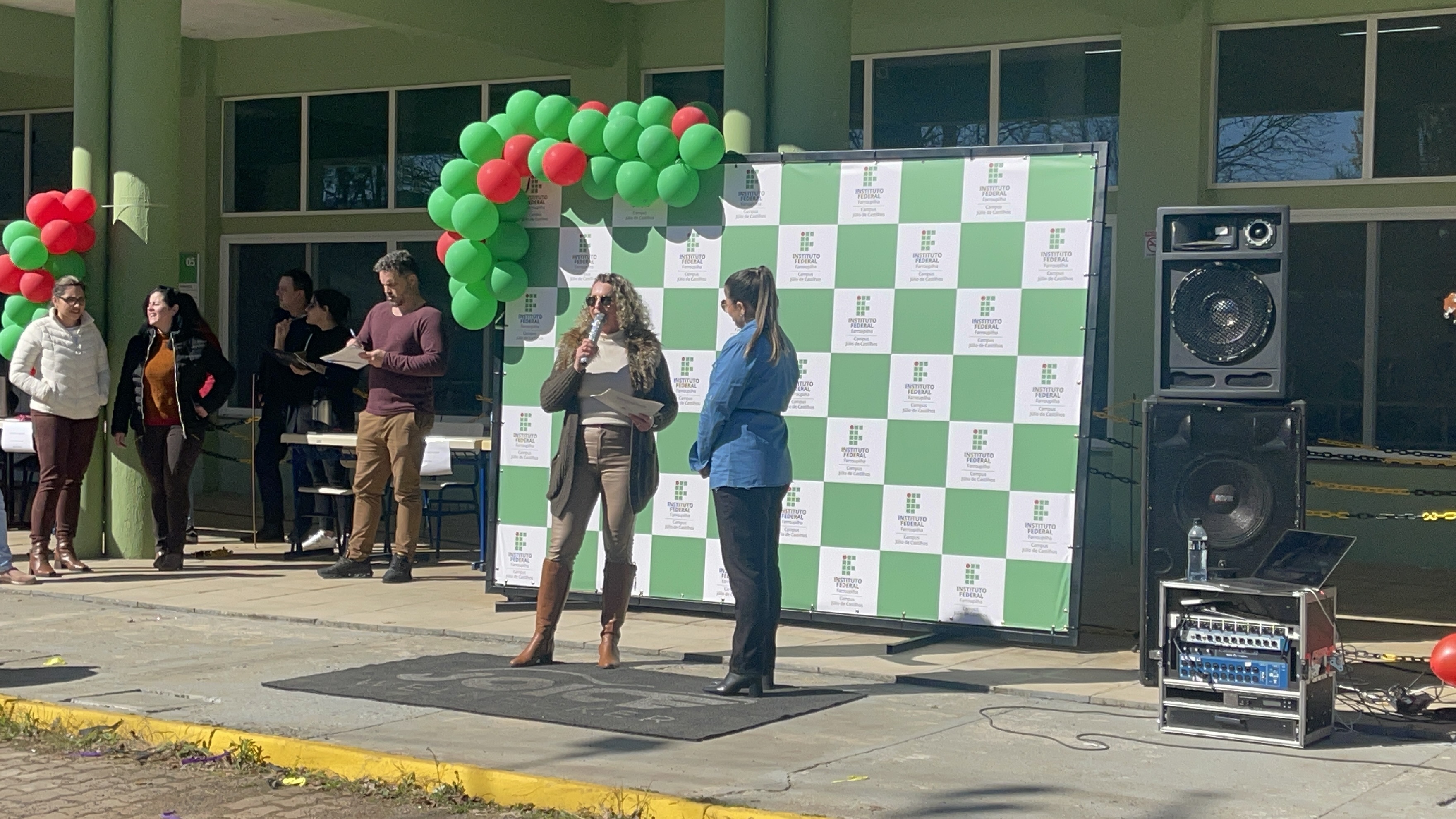 A cerimônia de recondução da professora Nídia Heringer ao cargo de reitora do Instituto Federal Farroupilha (IFFar) ocorreu nesta quinta-feira (21), no Salão Nobre do Avenida Tênis Clube, em Santa Maria. O evento contou com a presença do ministro da Educação, Camilo Santana, além de autoridades, servidores e cerca de 400 estudantes de todos os campi do IFFar.