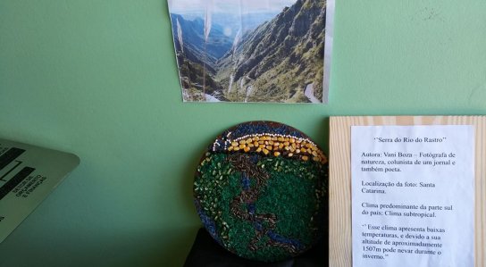 Os alunos realizaram pesquisas de fotógrafos brasileiros e através das fotografias analisaram os possíveis climas e paisagens do nosso país. Para a confecção das releituras fotográficas foram utilizados grãos, sementes e cascas de produtos agrícolas.