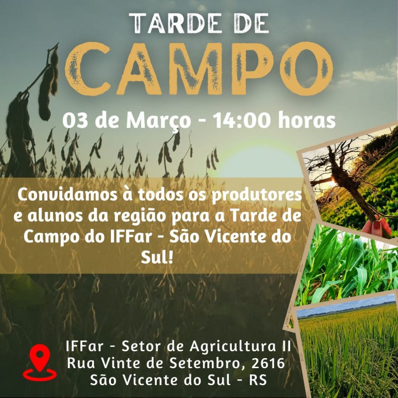 Na sexta-feira, dia 1º de março, acontece no Campus SVS uma Tarde de Campo, voltado aos produtores da região, assim como estudantes da área de Recursos Naturais.