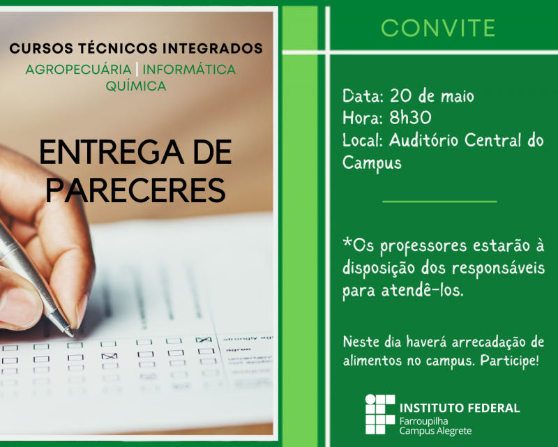 Entrega de Pareceres - Cursos Técnicos Integrados - Campus Alegrete