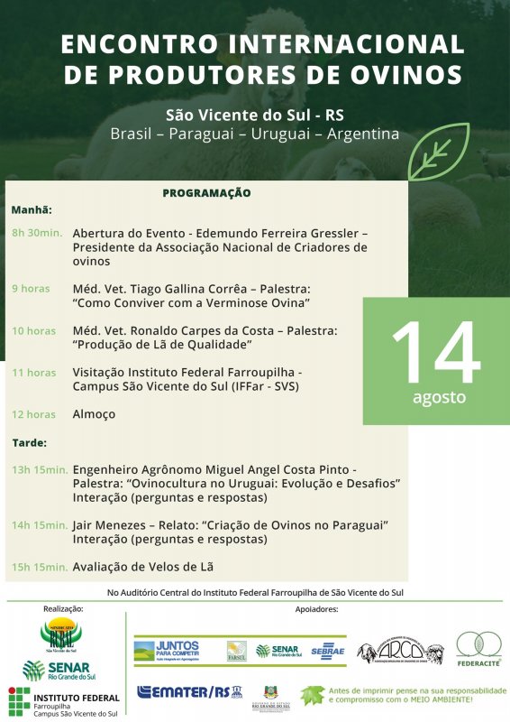 Página inicial > Eventos Institucionais > Encontro Internacional de Produtores de Ovinos