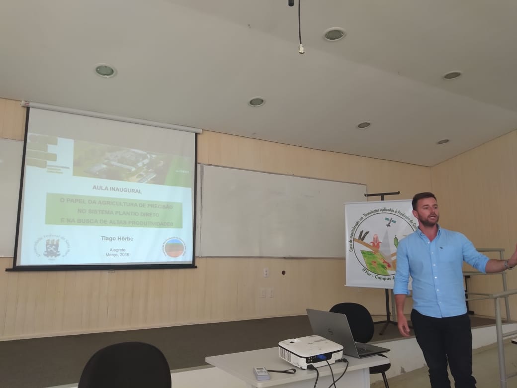 No dia 14 de março de 2019, iniciaram as atividades do novo Curso de Pós-Graduação do IFFar - Campus Alegrete. O curso de Pós-Graduação lato sensu "Tecnologias Aplicadas à Produção de Culturas de Lavoura" teve sua aula inaugural com duas importantes palestras: "Agricultura de Precisão" proferida pelo Prof. Dr. Tiago de Andrade Neves Horbe, Pós Doutorando da Universidade Federal de Santa Maria, e "Aviação Agrícola", proferida por Marcos Antônio Camargo, sócio-gerente da empresa Itagro Aviação Agrícola do município de Alegrete.
