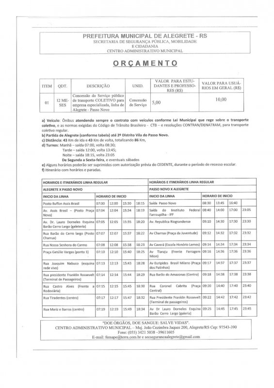 Página inicial > Alegrete > Itinerário - Planalto Transportes - Linha Alegrete x IFFar