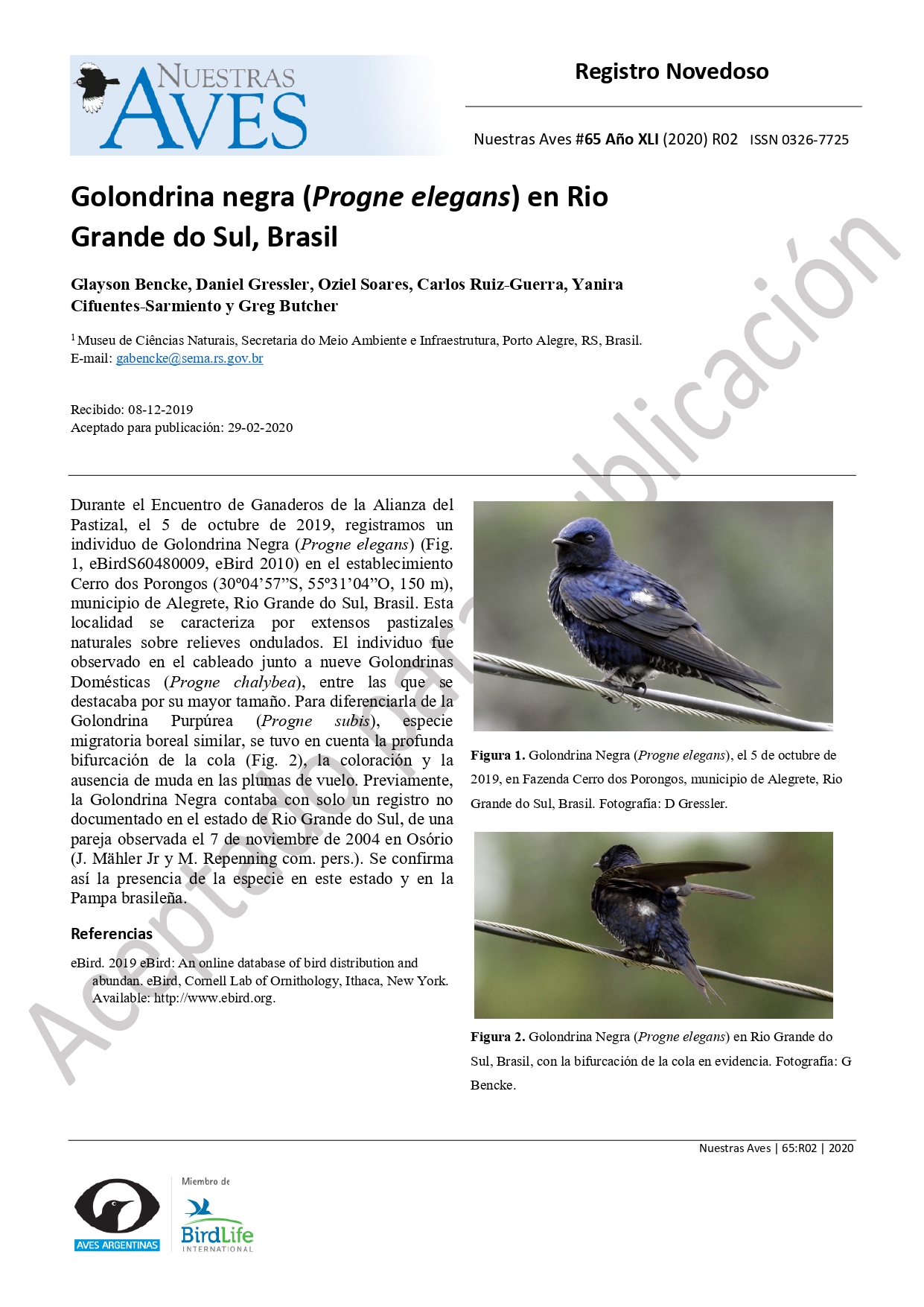 O fruto dessa descoberta foi materializado em uma nota científica internacional na revista “Nuestras Aves”. Foi o primeiro registro material que comprova a existência da espécie no Pampa gaúcho. Segundo Oziel, foi um momento de muito aprendizado e que não seria possível sem o apoio do IFFar - Campus Alegrete, através da docente Suelen de Leal Rodrigues e a Coordenadora do Curso de Ciências Biológicas, profª Jamile Gonçalves.