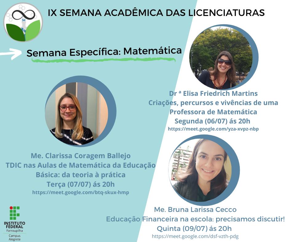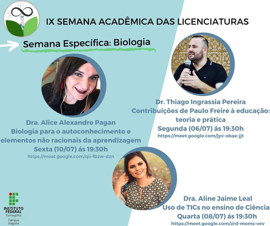 O evento acontecerá em uma edição on-line, reunindo os cursos de Licenciatura em Ciências Biológicas, Matemática e Química do Campus Alegrete com convidados externos, participação de professores do Campus e egressos.