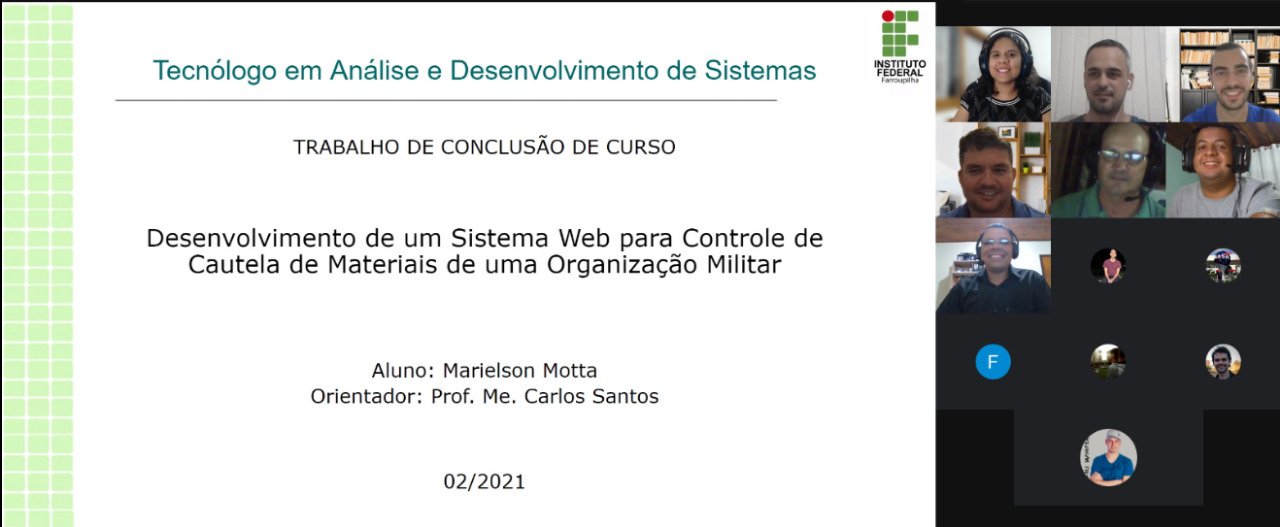 Entre os dias 08 e 10 de fevereiro de 2021, aconteceram as bancas de defesa dos Trabalhos de Conclusão de Cursos (TCCs) dos alunos concluintes 2020 do Curso Técnico em Informática Integrado e do Curso de Tecnologia em Análise e Desenvolvimento de Sistemas. No total, 18 alunos de Informática e 04 de ADS defenderam seus trabalhos.