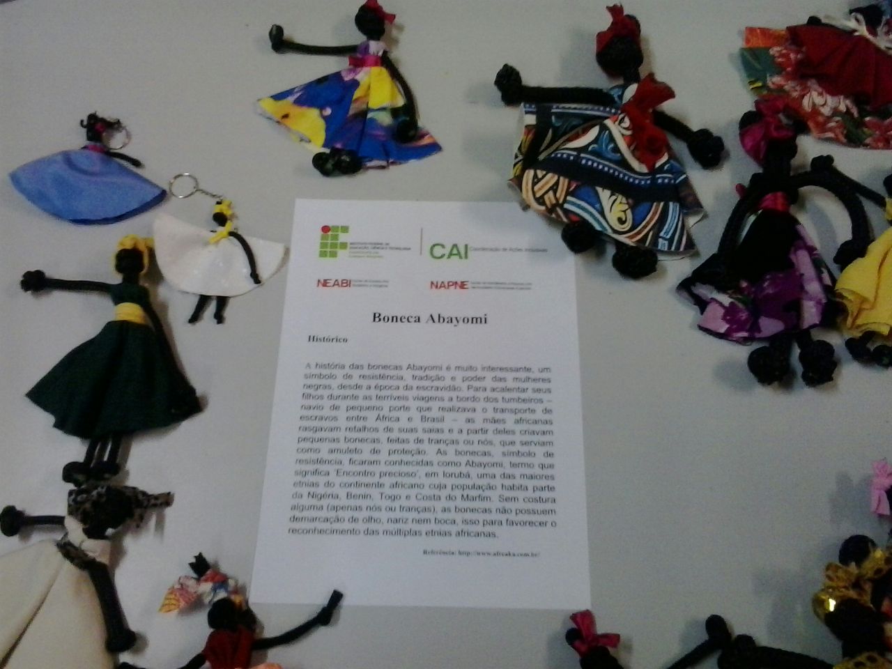 O Núcleo de Estudos Afro-Brasileiros e Indígenas - NEABI, do IF Farroupilha - Campus Alegrete, através de seu membro Aires Dornelles, levou uma atividade de extensão até a comunidade. Aires ministrou uma oficina de confecção da boneca Abayomi no evento sobre Outubro Rosa do Centro Profissionalizante Nehyta Ramos, em Alegrete, no dia 20 de outubro.