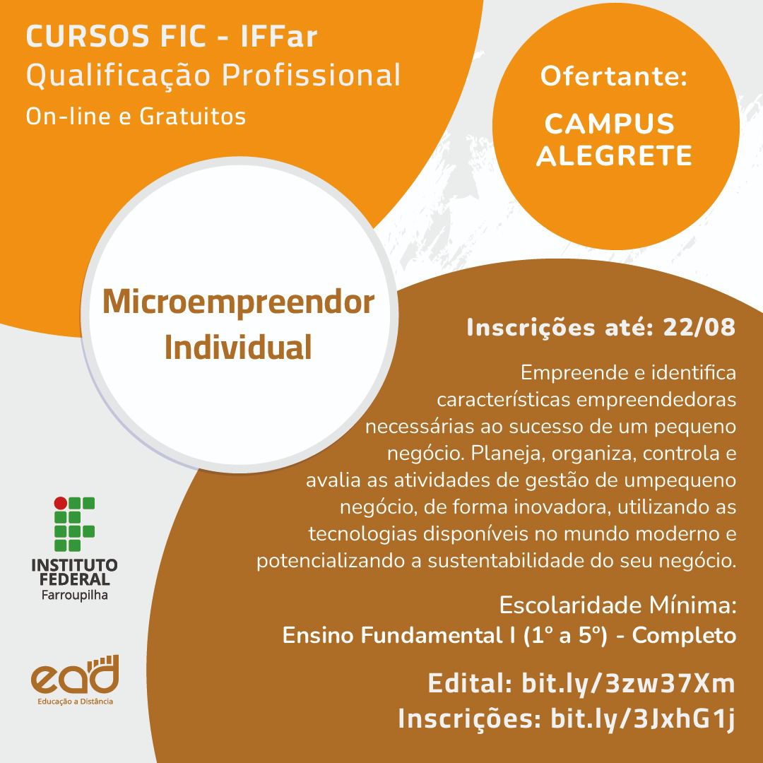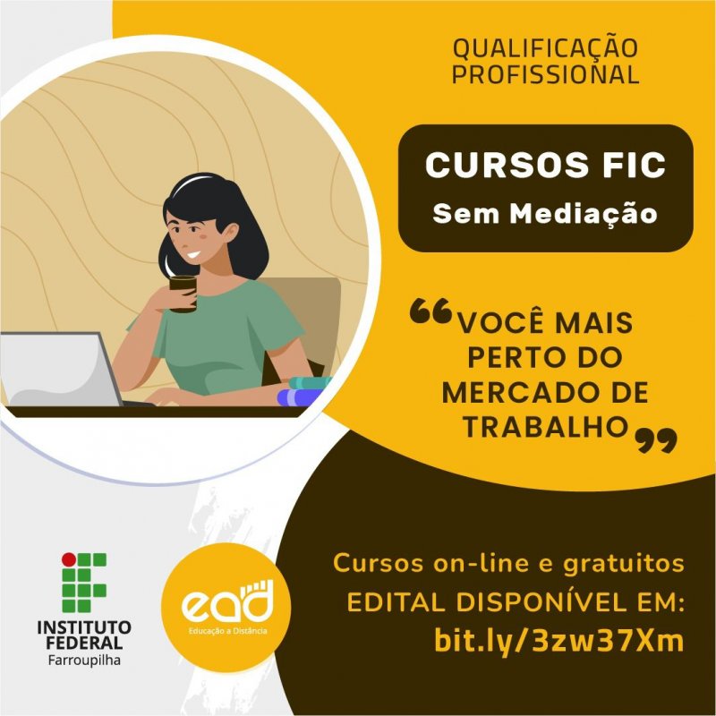 Está aberto o edital com objetivo de selecionar alunos para os cursos de Formação Inicial e Continuada (FIC) na modalidade a distância e sem mediação. São ofertadas 3.200 vagas. As inscrições são gratuitas e vão até 22 de agosto.
