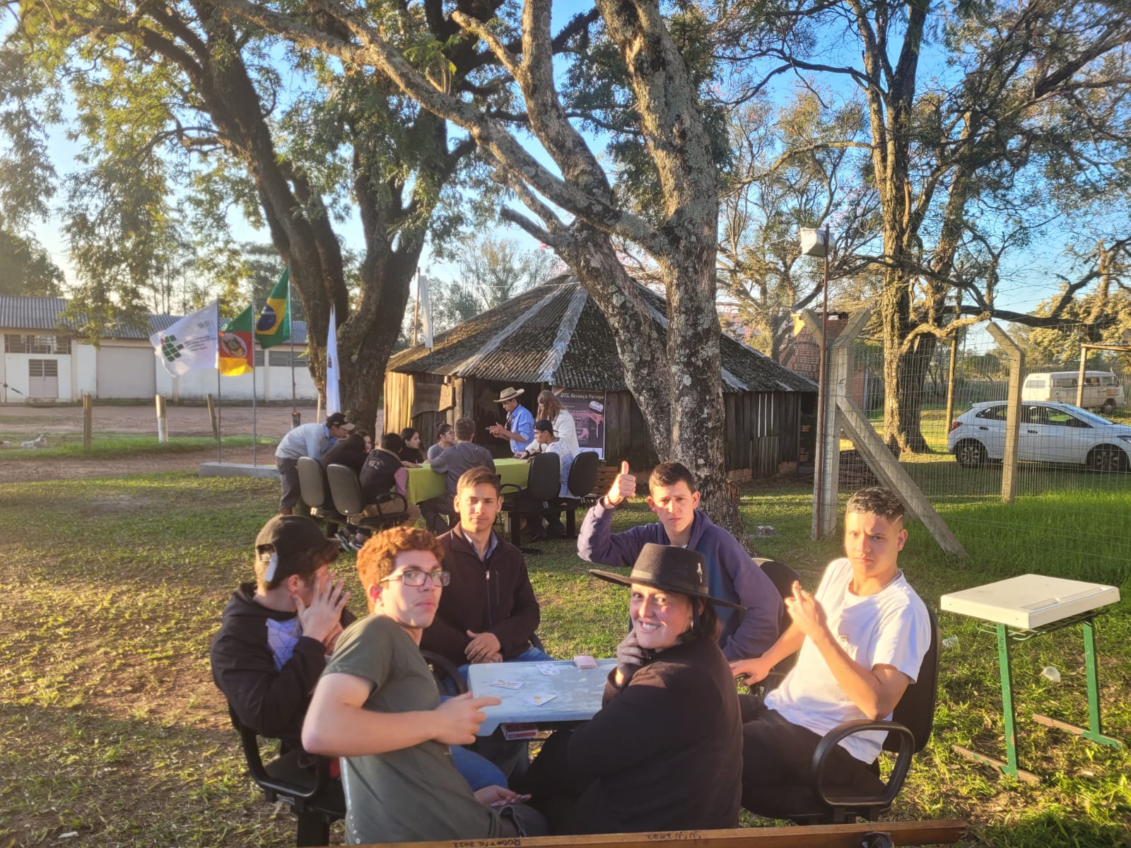 Para finalizar o dia, a equipe diretiva uniu-se para fazer uma janta campeira para os alunos da Moradia Estudantil.