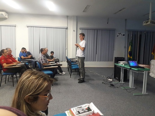 Após o intervalo, foi distribuído aos alunos o material de conscientização e prevenção das doenças causadas pelo mosquito Aedes aegypti e foram apresentados os projetos de ensino, pesquisa e extensão executados pelos professores do Curso, bem como os possíveis projetos para 2016. A pedagoga Denise Batalha enfatizou a importância da participação dos alunos nos projetos para aprendizagem. Nesse momento, os alunos que participaram dos projetos já executados puderam compartilhar as suas Vivências com os demais e incentivaram os colegas “novos” a participar. Esse foi um momento também de partilha das dificuldades encontradas pelos alunos na sua jornada estudantil, da boa relação com os colegas, das comemorações realizadas nas turmas, da presença e da importância das ações do Diretório Acadêmico junto ao Curso, entre outros. Foi possível perceber a emoção de diversos alunos ao partilhar sua experiência. Certamente o II Vivências do TA serviu para forçar o elo entre os alunos, professores, servidores e com a Instituição. No encontro foram arrecadados 43 kg de alimentos não perecíveis, que serão doados para instituição carente.
