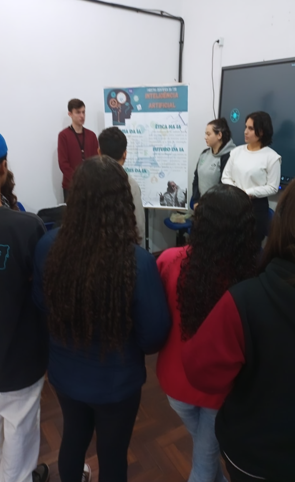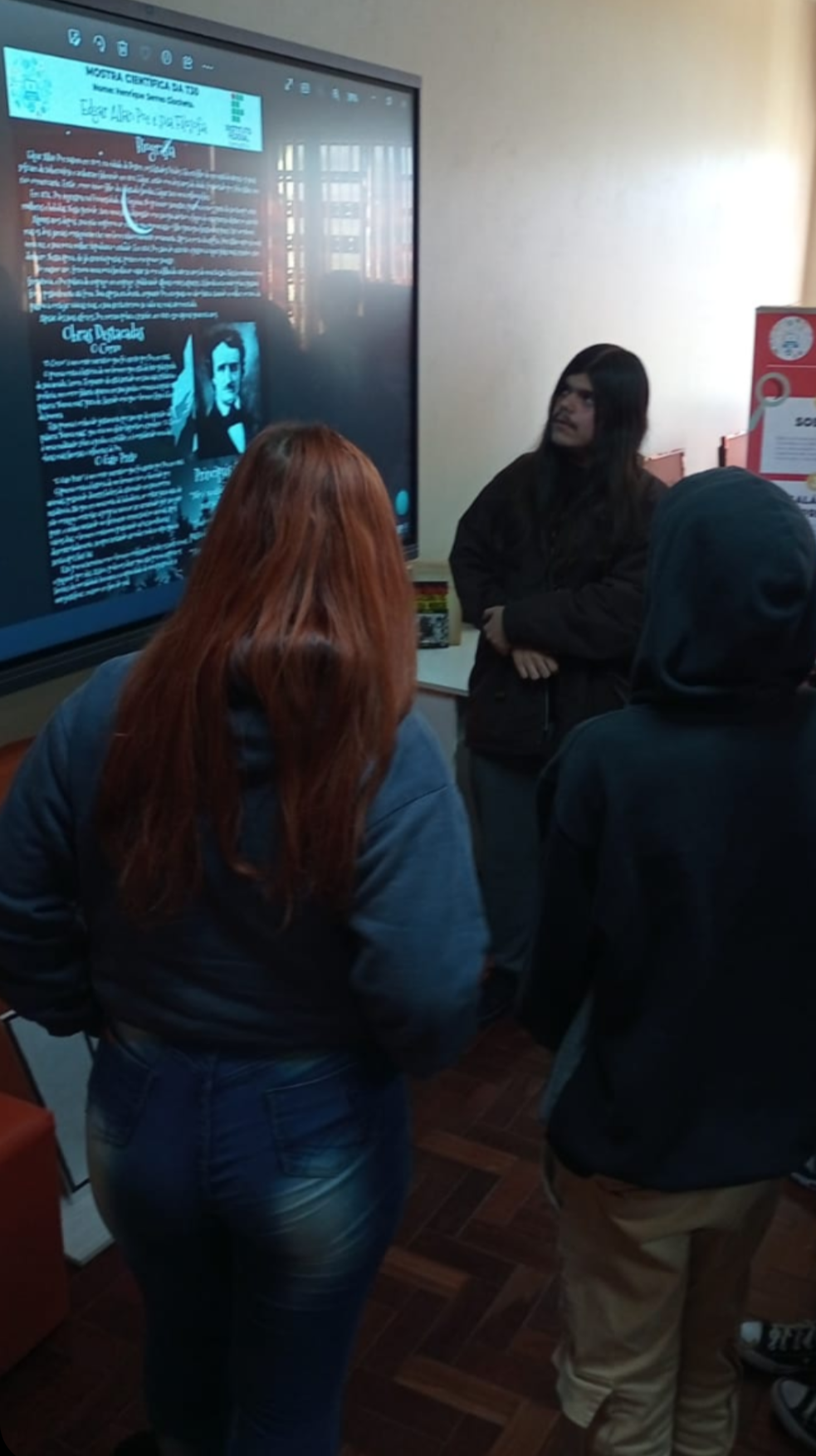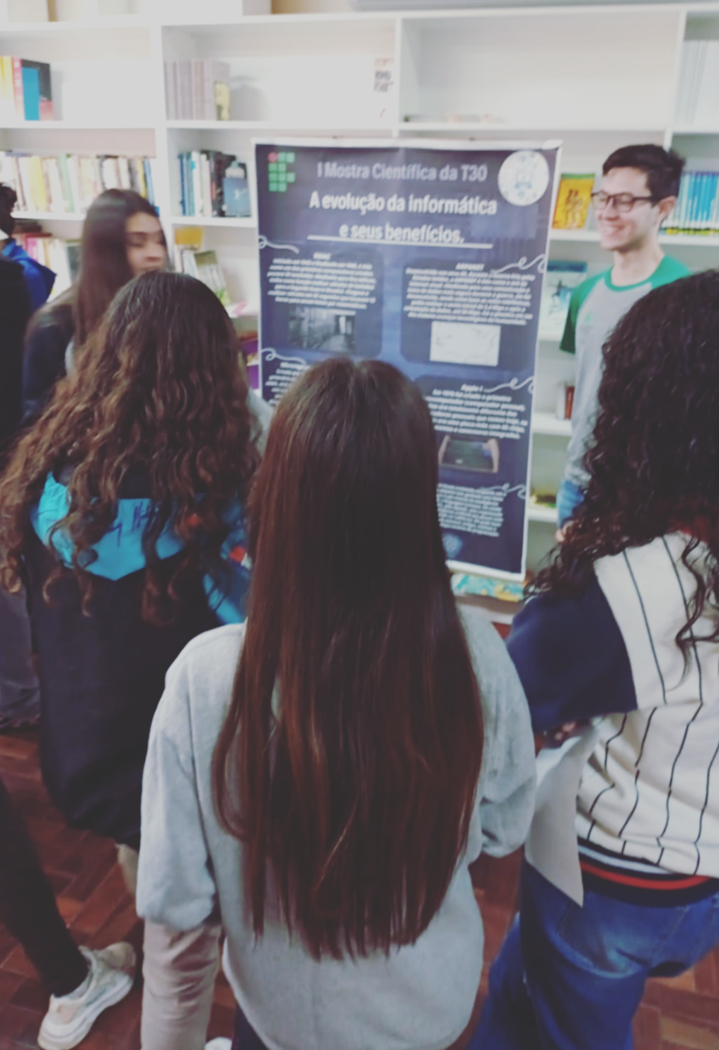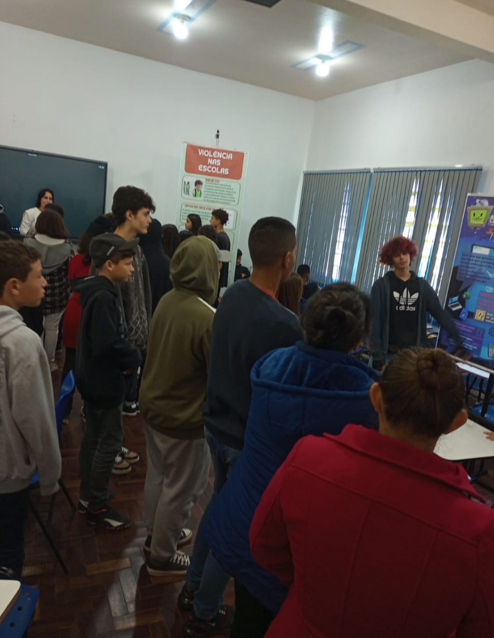Estudantes do 3° ano do curso técnico em informática apresentaram, em forma de pôsteres, pesquisas sobre diferentes assuntos aos alunos da rede municipal de Alegrete.