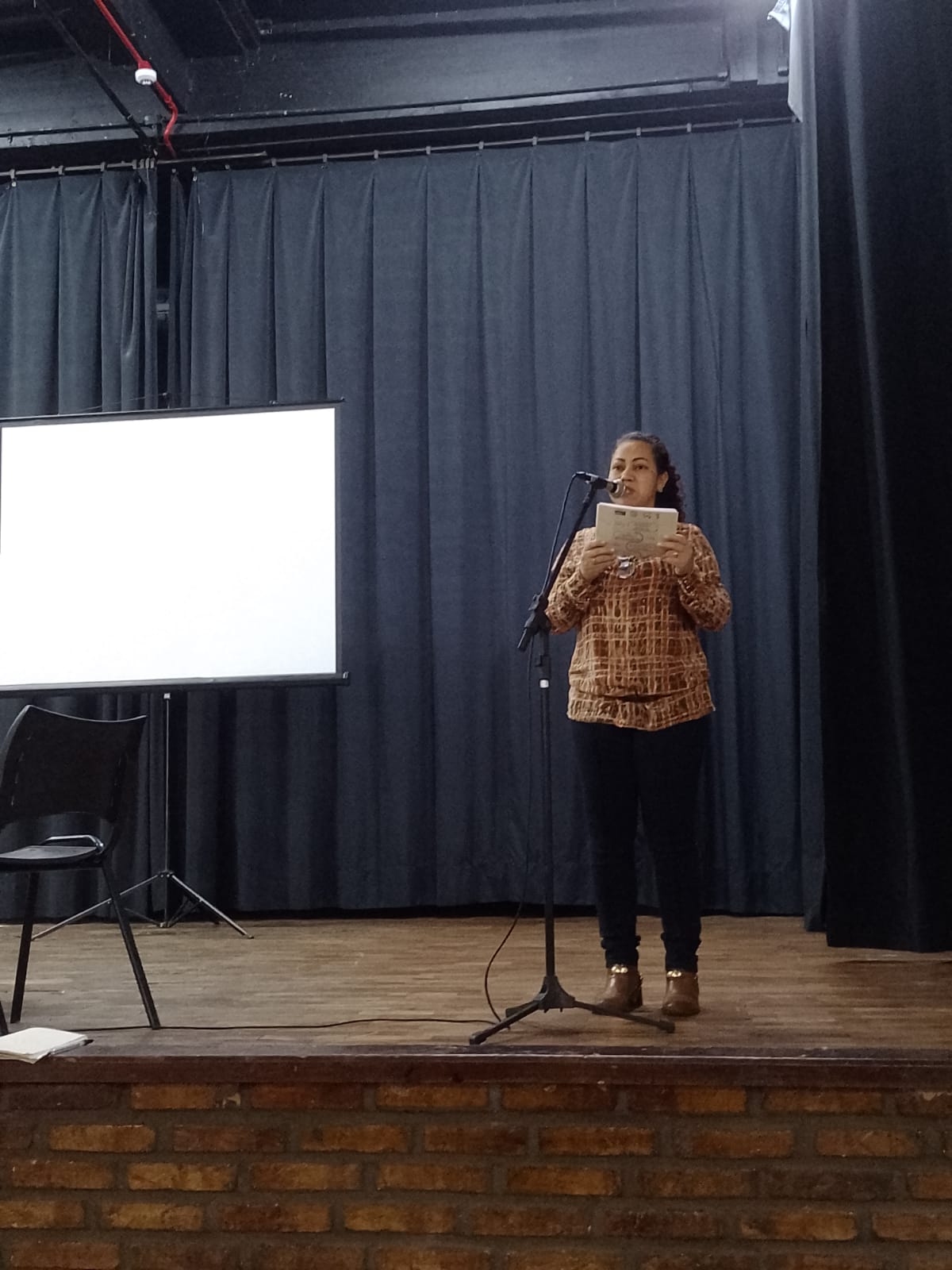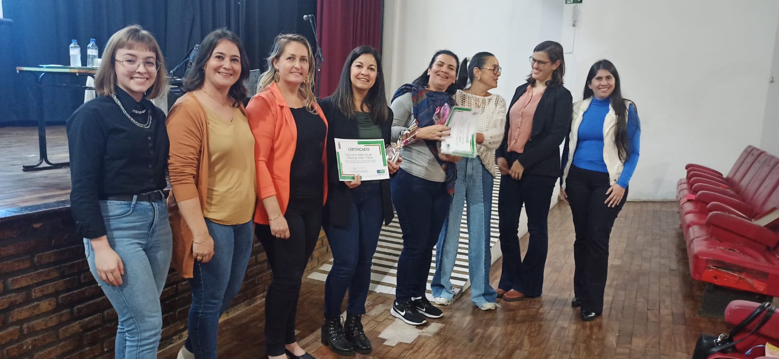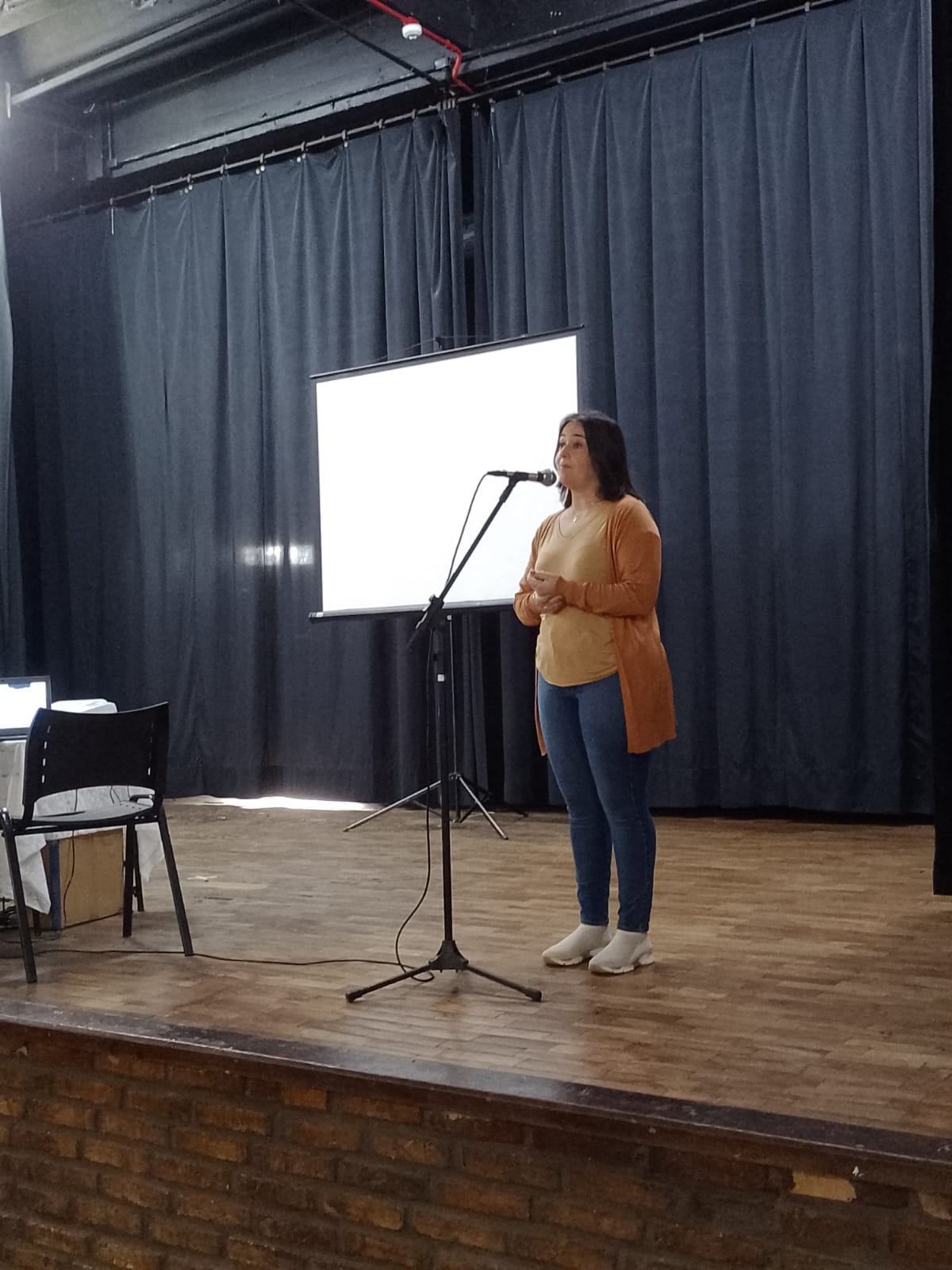 A professora Calinca Pergher fez a fala inicial em nome do projeto de extensão. Estiveram presentes gestores da rede municipal de ensino, especialistas e orientadores educacionais e representantes do conselho municipal de Educação, além das professoras do IFFar, Gabriela da Ros de Araújo e Tanize Gonçalves da Silva.