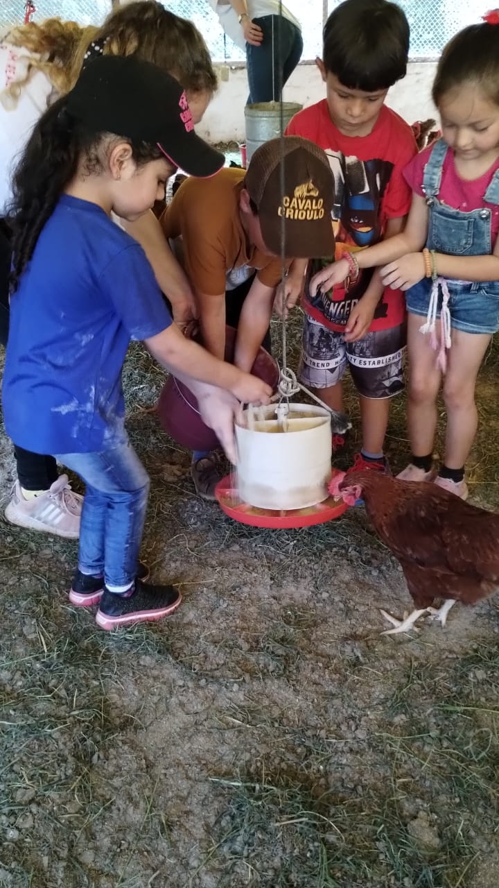 As crianças puderam visitar e acariciar as aves, fazer o arraçoamento, fornecer pasto e realizar a colheita dos ovos nos ninhos, conforme os registros da ação. Foi uma tarde muito gratificante para todos os envolvidos, conforme agradeceu a equipe diretiva na pessoa da diretora Tanise.