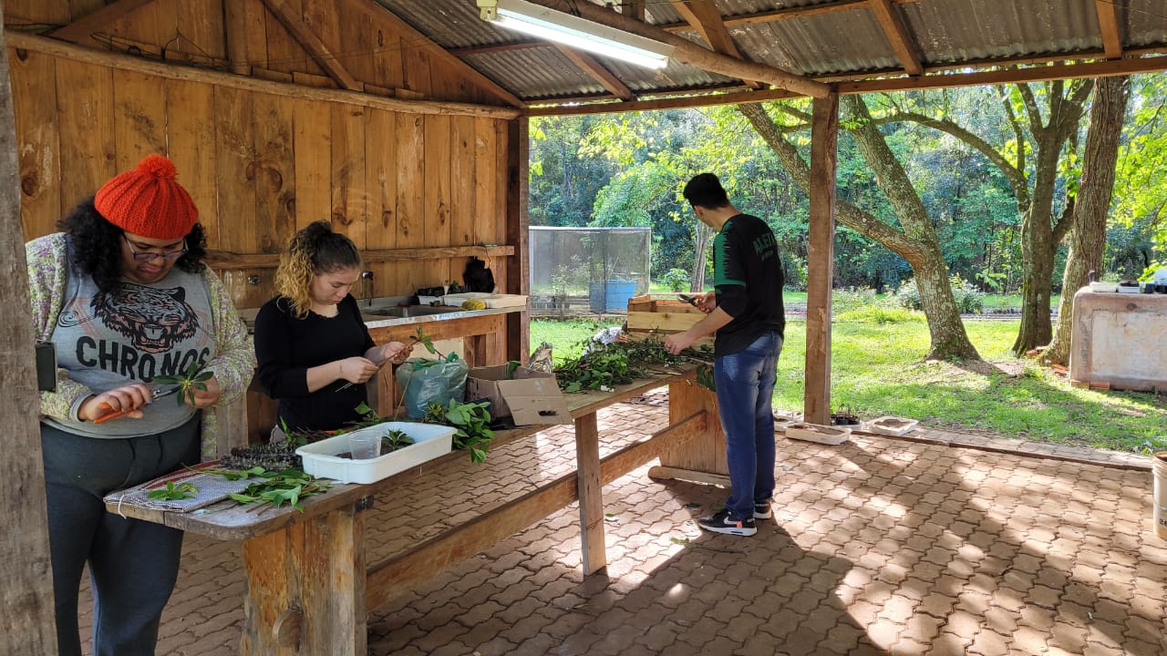 Nesta atividade, os alunos puderam colocar em prática aspectos técnicos da realização da produção de mudas por meio da estaquia, que consiste em propagar plantas assexuadamente a partir de suas partes vegetativas: folhas, ramos, galhos e estacas. Assim, é possível obter uma nova planta, idêntica à planta-mãe, através deste método de reprodução.
